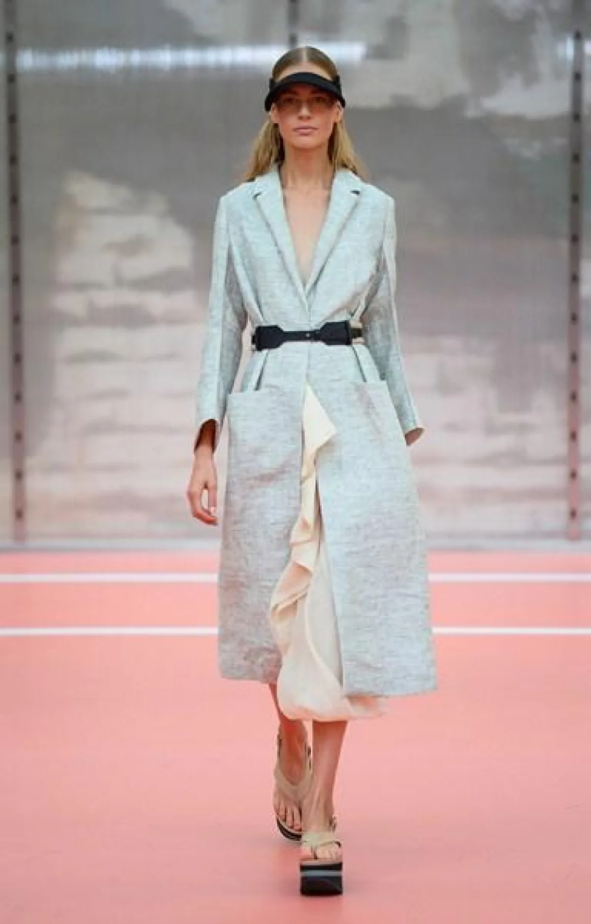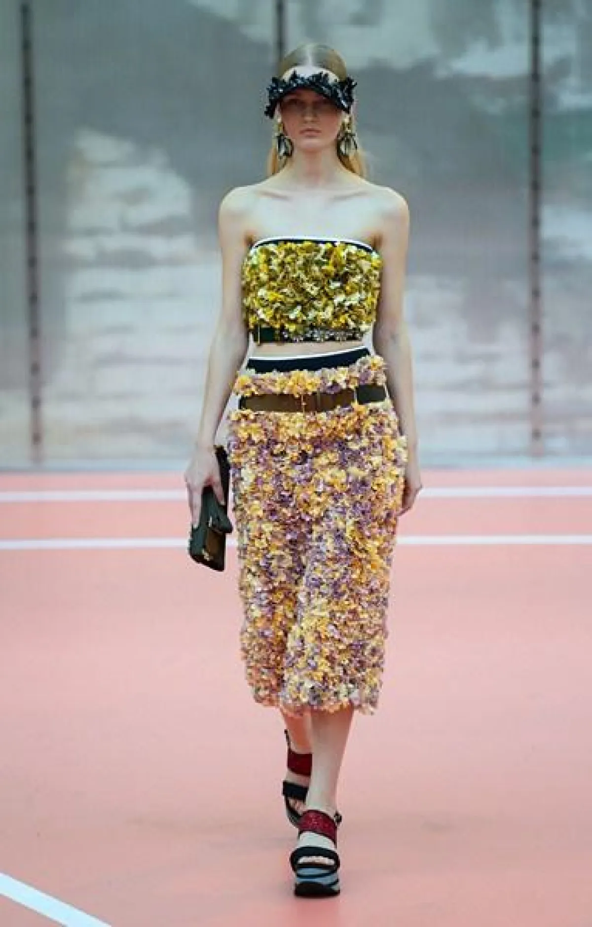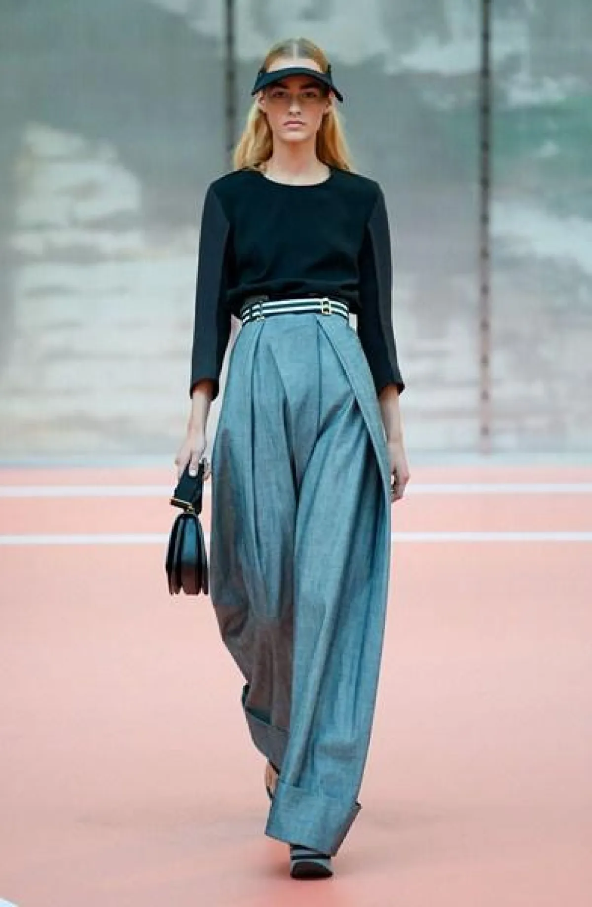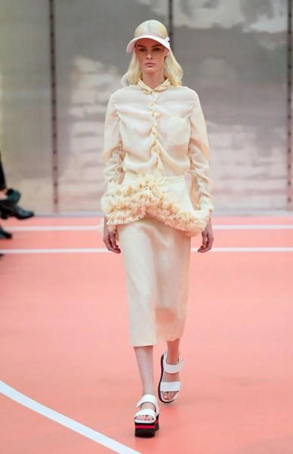 وتنوّعت مجموعة Marni ما بين الفساتين المتوسّطة الطول وموضة الكشاكش أو الـ Rufflesوالتنانير ذات القصّة الواسعة"Flared" المزيّنة بأحزمة مقلّمة، أي بموضة الـStripes.