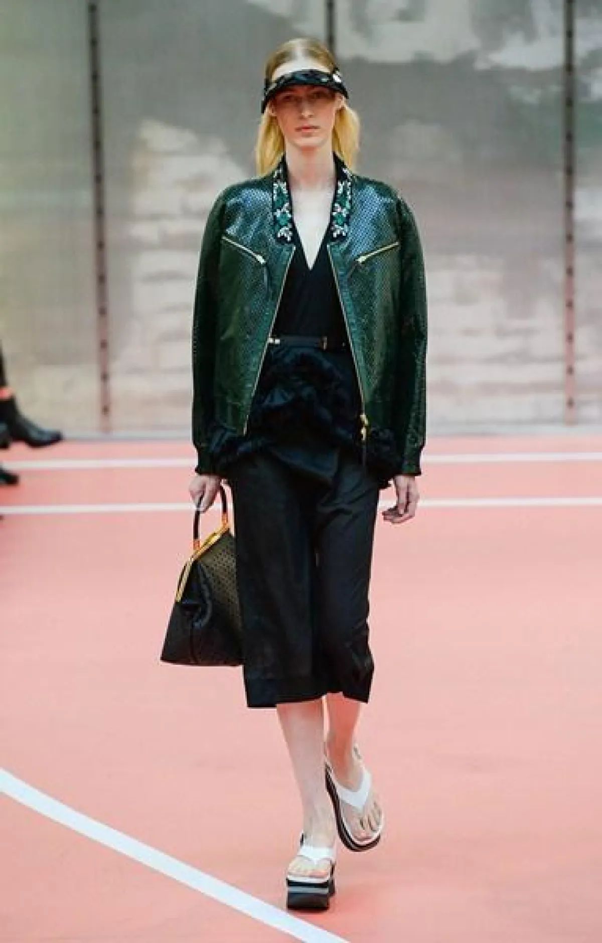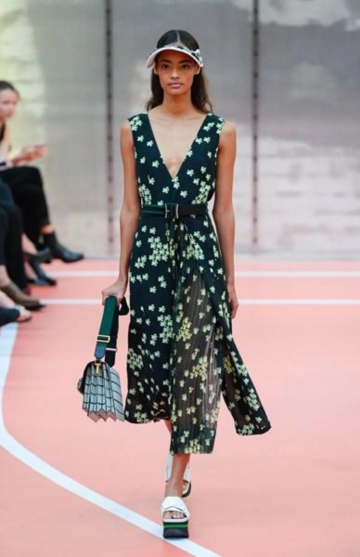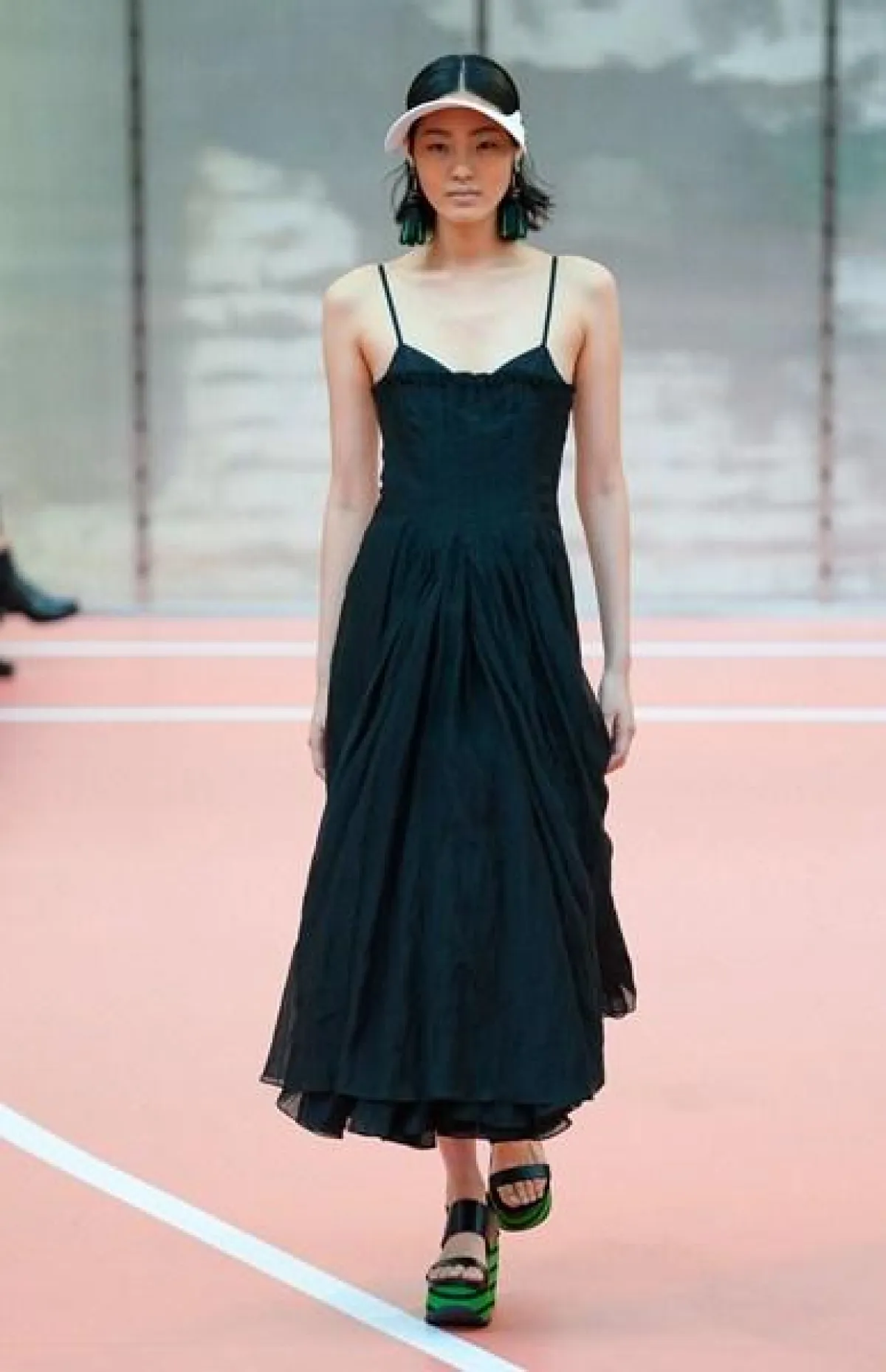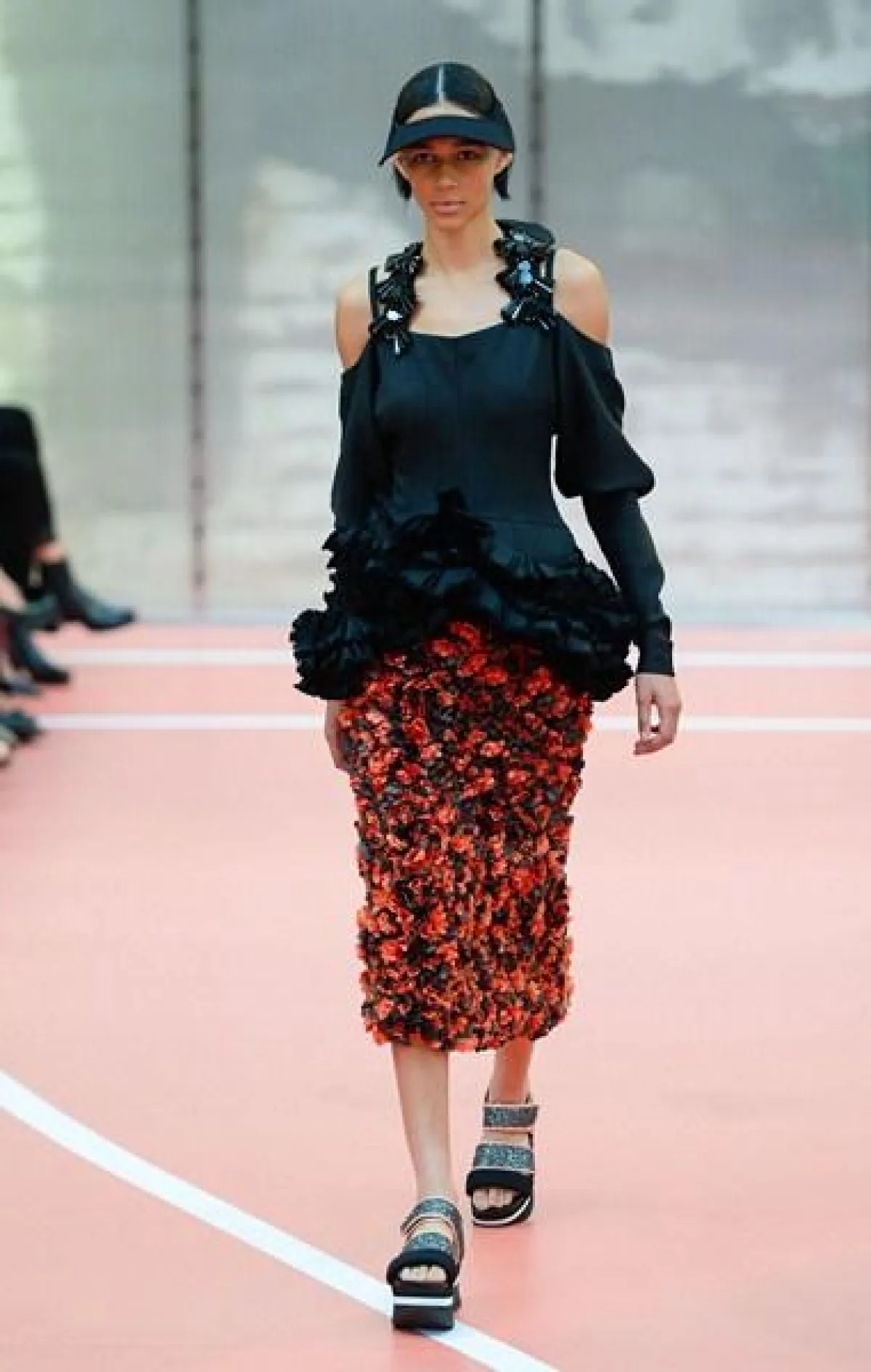 وتنوّعت مجموعة Marni ما بين الفساتين المتوسّطة الطول وموضة الكشاكش أو الـ Rufflesوالتنانير ذات القصّة الواسعة"Flared" المزيّنة بأحزمة مقلّمة، أي بموضة الـStripes.
