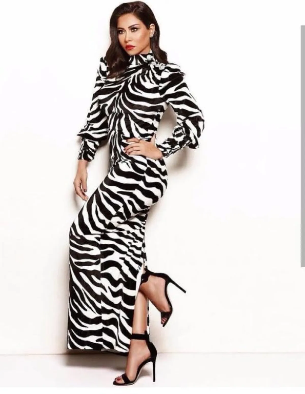 مايا دياب في فستان نقشة الحمار الوحشي من نيكولا جبران: