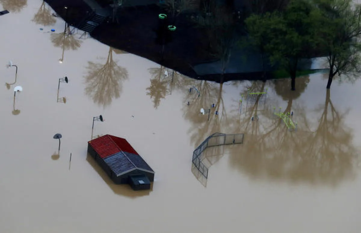 الفيضان الكبير الذي اجتاح المنطقة، حوّل شوارع وأزقة بلدة «غورنفيل»، إلى جداول وأنهار وممرات مائية، وأصبح لا يمكن السير بها على الأقدام أو في السيارة، وأصبحت وسيلة التنقل الوحيدة في البلدة الأميركية باستخدام القوارب فقط. إذ يُشار إلى أن تساقط الأمطار الغزير على الولاية، كان قد سجل معدلات عالية جدًا، بينما بلغ منسوب النهر أعلى مستوى له منذ نحو 20 عامًا، بحسب ما نقلته وسائل الإعلام عن هيئة الأرصاد المحلية.