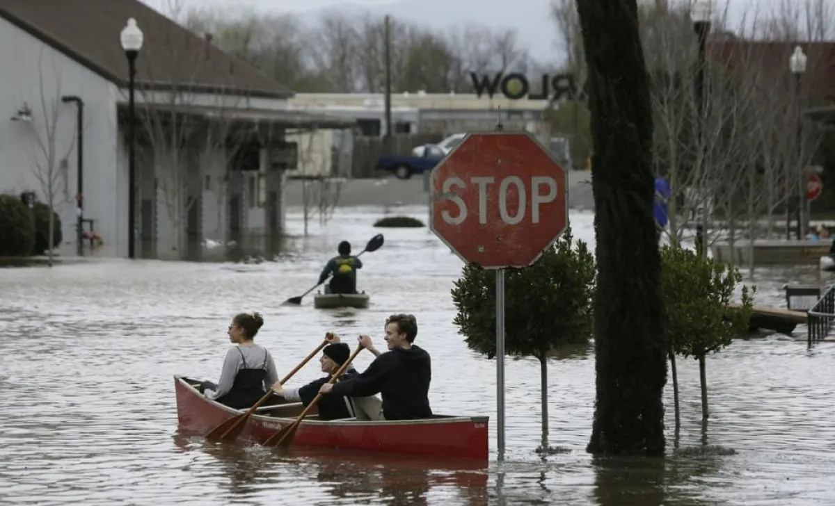 وبحسب ما ذكره موقع «سكاي نيوز»، فإن الهطول الغزير والمستمر للأمطار على بلدة «غورنفيل» والمناطق المجاورة لها في كاليفورنيا، كان قد أدى إلى فيضان اجتاح ضفتي نهر «الروسي» البالغ طوله 100 كيلومتر، وهو الأمر الذي حول البلدة الصغيرة إلى «جزيرة»، حيث أصبح سكانها ومن يود الوصول إليها لا يستطيعون فعل ذلك إلا بواسطة القــوارب.