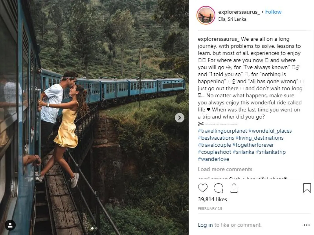 مؤخرًا، أثار الزوجان البرتغاليان عاصفة شديدة من الانتقادات؛ بعد أن قاما بنشر صورة عبر صفحتهما على «إنستغرام»، وصفها العديد من رواد التواصل الاجتماعي بأنها «خطيرة»، وبأنها تحبس الأنفاس، حيث تظهر «راكيل» في هذه الصورة تتدلى من قطار متحرك في إحدى البلدات الصغيرة في سيريلانكا، وهي تمسك بمقبض باب القطار بينما كان يتحرك، في حين كانت برفقة حبيبها «ميغيل» الذي كان يقبّلها على جبهتها، وفقًا لما نقله موقع «سكاي نيوز» عن صحيفة الـ«ديلي ميل» البريطانية.
