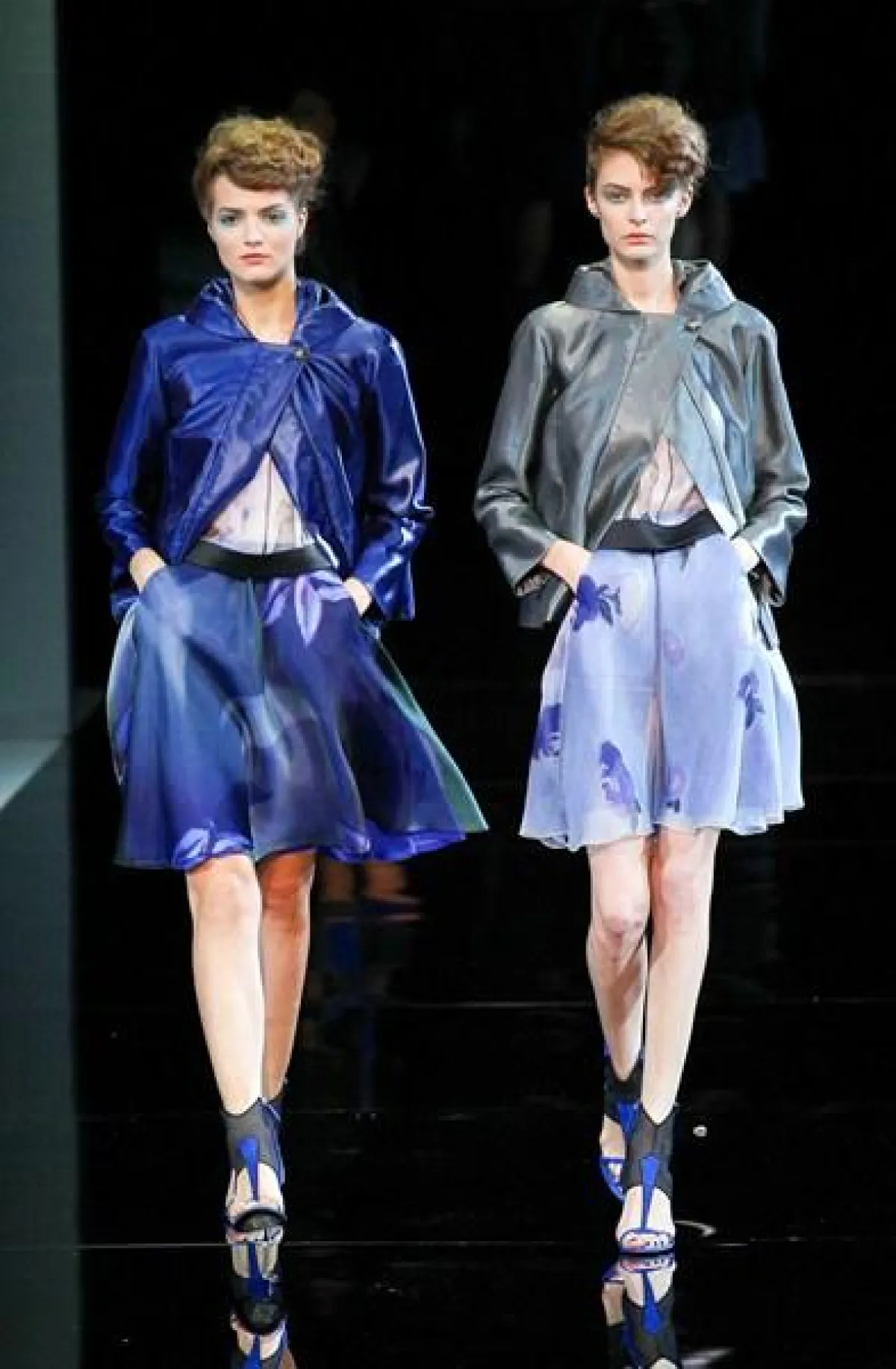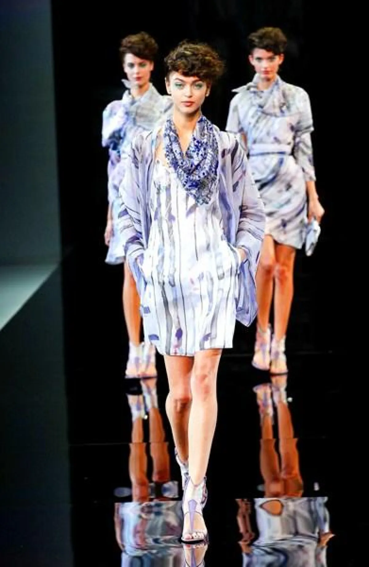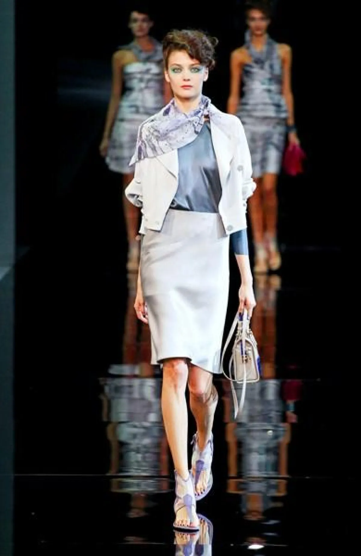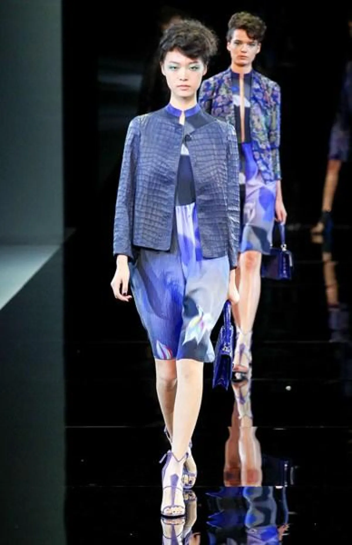 تميز عرض مجموعة Giorgio Armani لربيع وصيف 2014 في أسبوع الموضة في ميلان بعرض ثنائي وثلاثي،أي خروج جماعي لعارضات الأزياء.