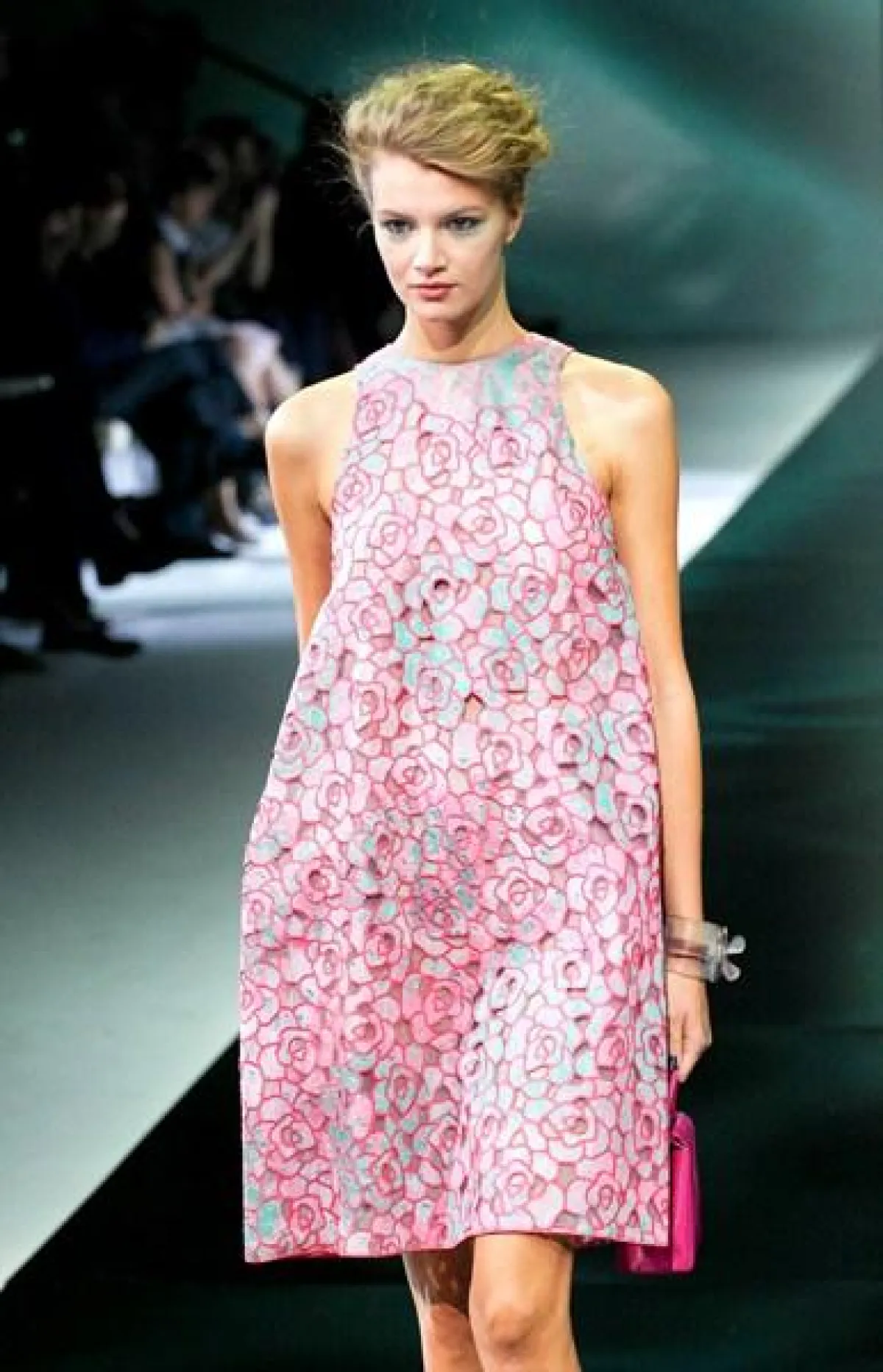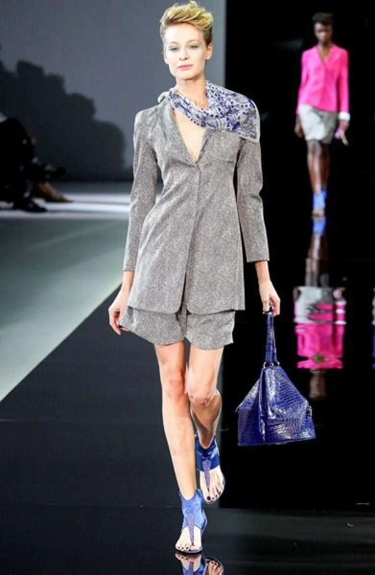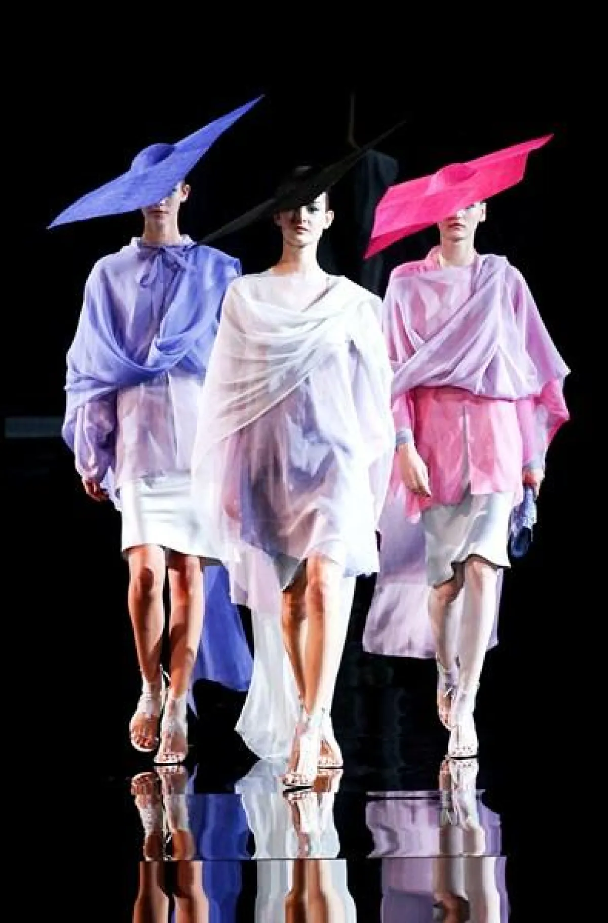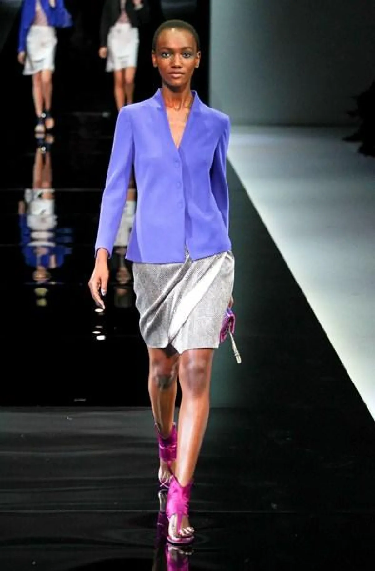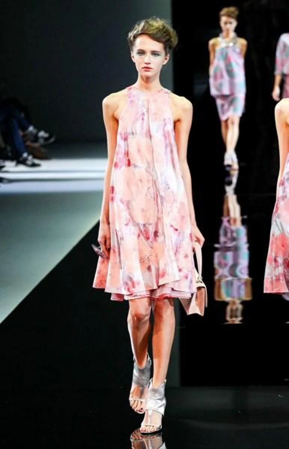 تميز عرض مجموعة Giorgio Armani لربيع وصيف 2014 في أسبوع الموضة في ميلان بعرض ثنائي وثلاثي،أي خروج جماعي لعارضات الأزياء.