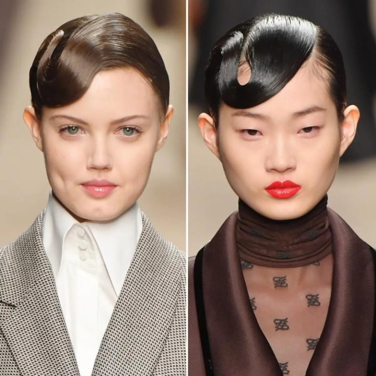 كان لافتاً جداً في عرض فندي Fendi تسريحات الشعر التي اعتمدتها، والتي تميزت بالجرأة والعصرية، حيث اختارت تسريحة الشعر المبلل المسحوب الى الخلف بأسلوب ذيل الحصان مع الغرة الجانبية، وبأسلوب الريترو مع الخصل الهندسية والمبللة فوق التسريحة. فيما برز مكياج البشرة الطبيعي والمتوهج والشفاه اللامعة بألوان النيود والأحمر.