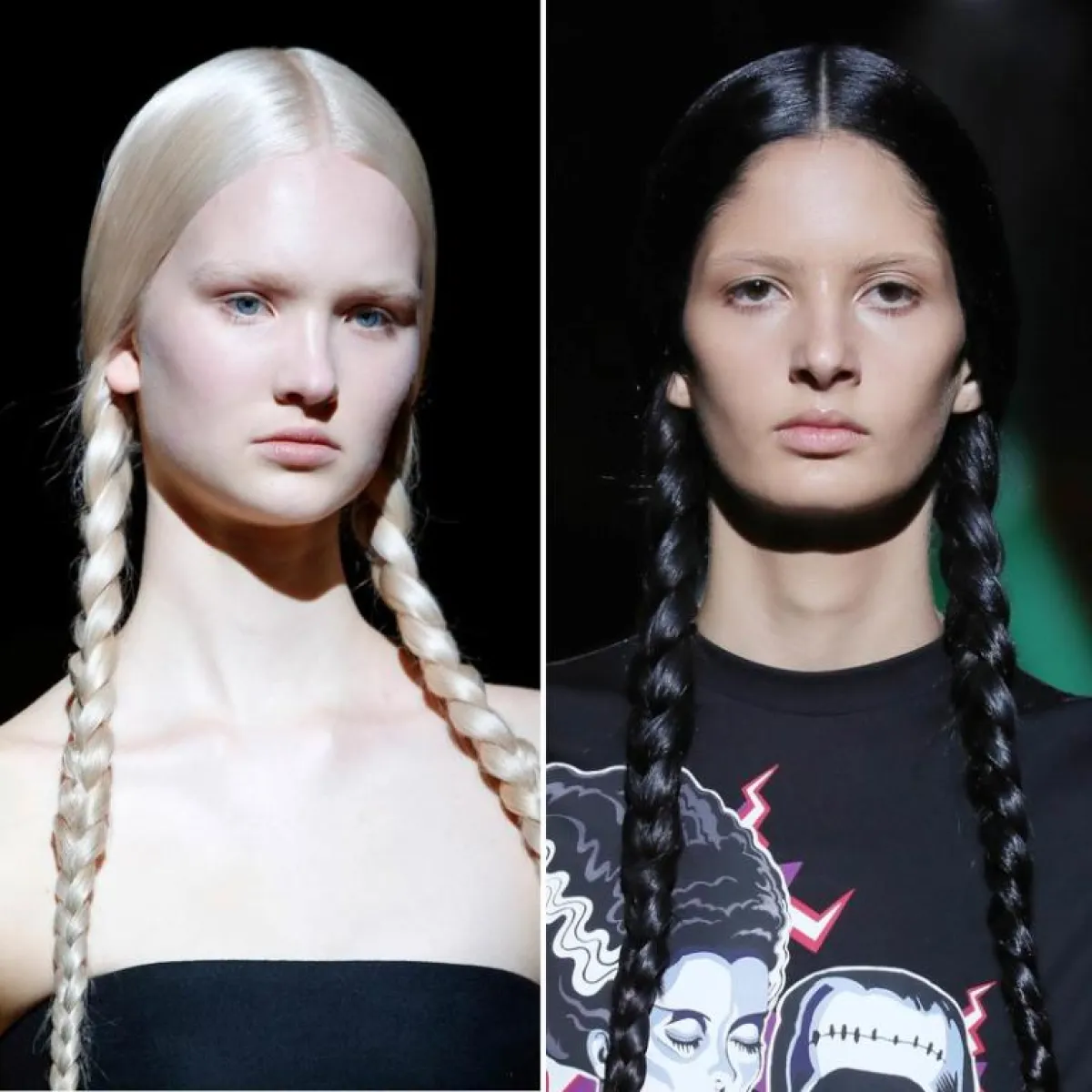 خلال عرضها في أسبوع الموضة في ميلانو لخريف 2019، اختارت دار برادا أسلوباً ناعماً جداً ومفعماً بالأنوثة في ما يتعلق بالمكياج وتسريحات الشعر، حيث اعتمدت تسريحة الشعر الطويل المضفر على شكل ضفيرتين منسدلتين على الأكتاف مع الغرة النصفية. فيما اعتمدت المكياج الطبيعي المتوهج والمشرق.