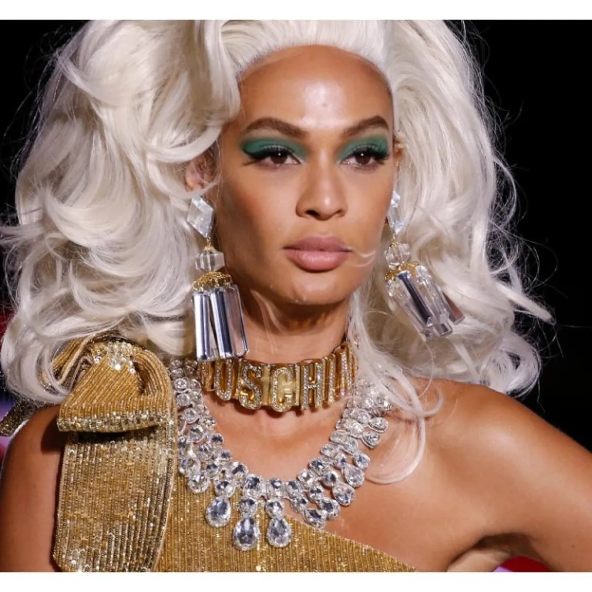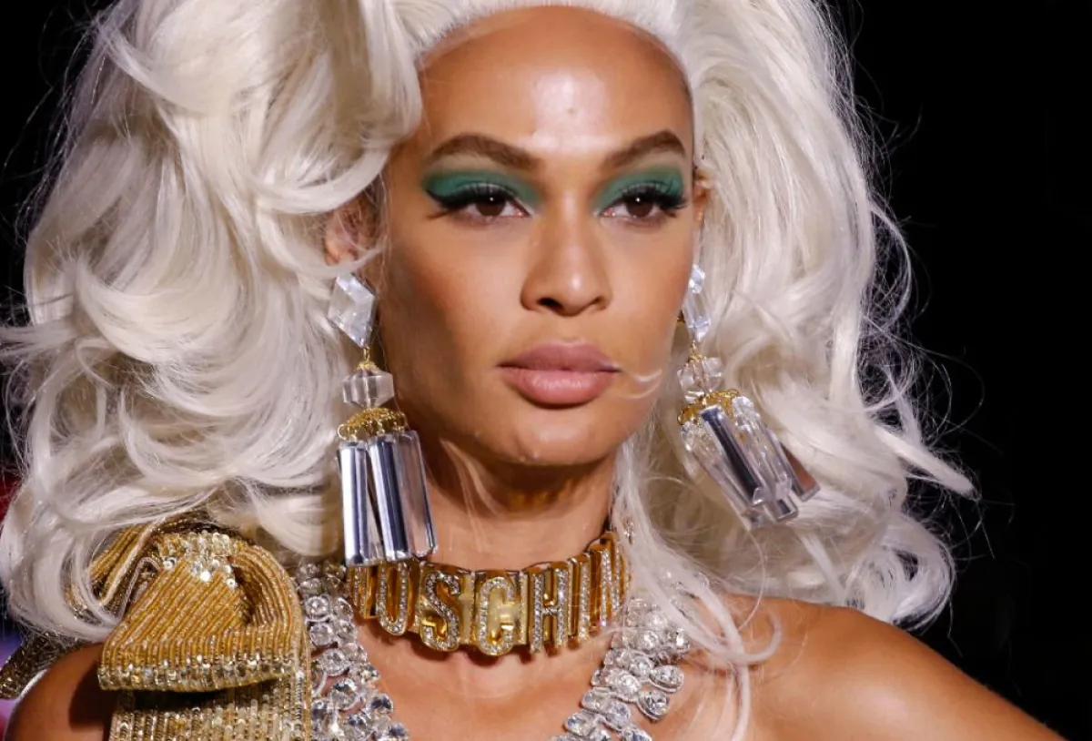 لقد كانت تسريحات الشعر العالي حاضرة بقوة في عرض موسكينو، والتي ذكرتنا بمرحلة الثمانينات، حيث اعتمدت الدار التسريحات العالية المنفوشة مع الخصل الويفي العريضة والغرة الجانبية. فيما ارتكز المكياج الذي اعتمدته على ظلال العيون الملونة والشفاه الطبيعية والقليل من البلاش، والرموش الاصطناعية.