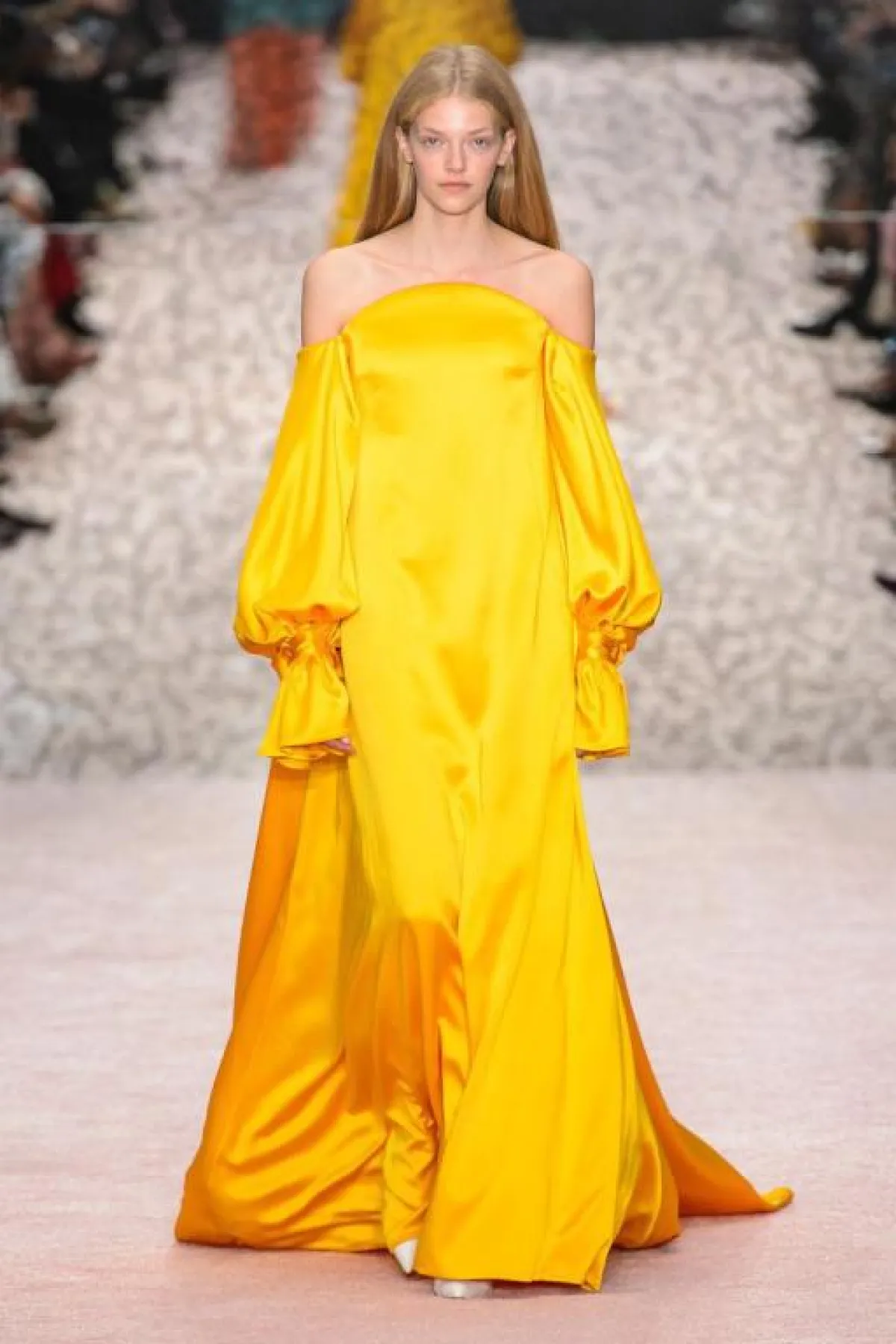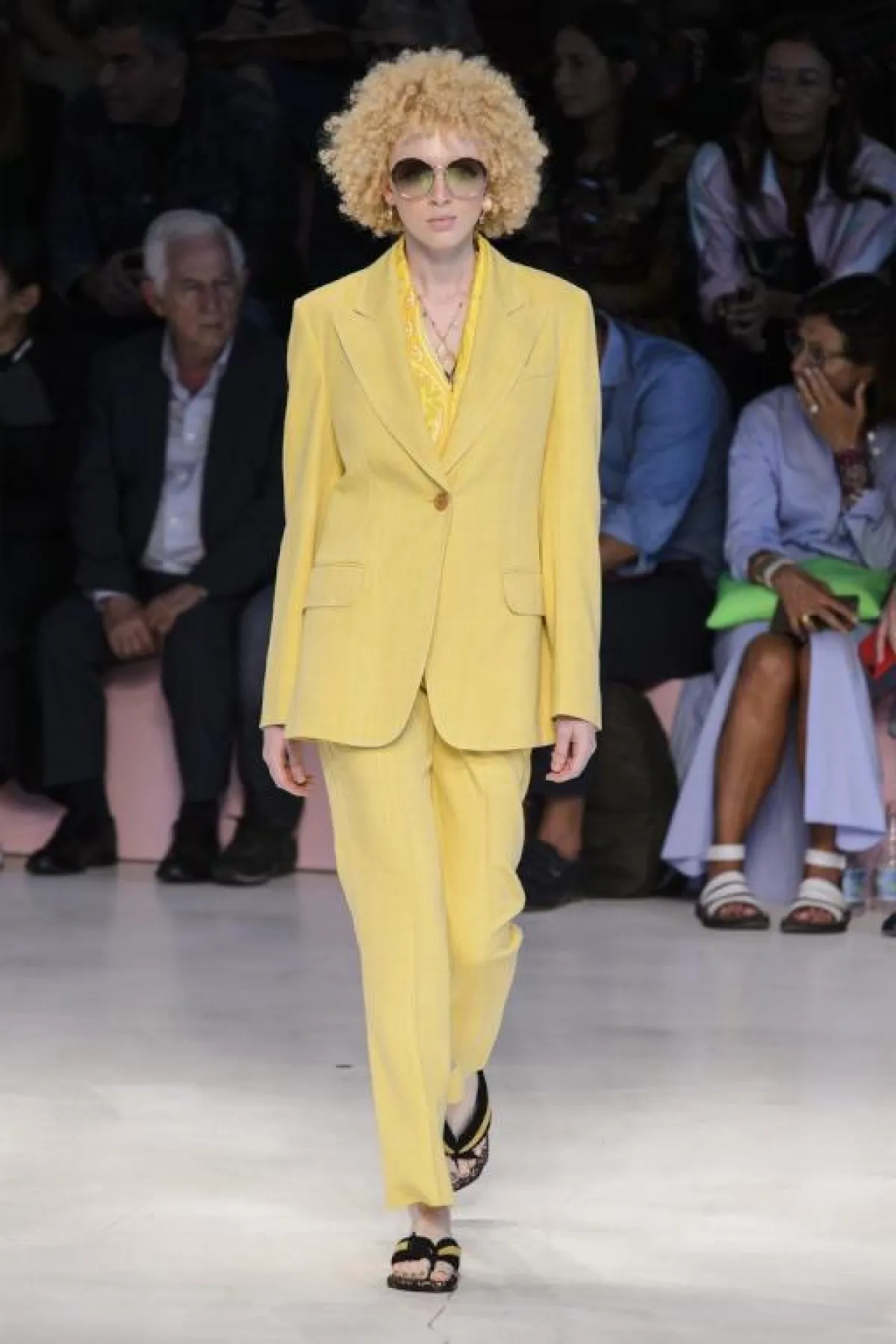 وسيستمر معنا هذا اللون المنعش للربيع والصيف المقبل، بدرجاته المختلفة كالأصفر الباهت أو الخردلي، مثلما تألقت الكثير من دور الأزياء العالمية بـ الفساتين الناعمة كعروض Carolina Herrera كارولينا هيريرا، و Brandon Maxwell براندون ماكسويل، أو بـ البدل العصرية كعروض إيترو Etro.