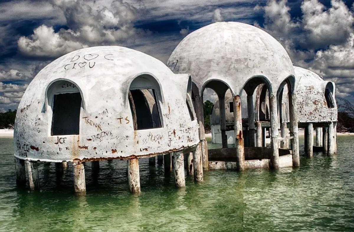 توجد هذه القبة في منطقة «كيب رومانو»، في مقاطعة «كولير» بولاية فلوريدا الأمريكية، كان قد تم تشييدها في عام 1980 من قبل رجل الأعمال المتقاعد «بوب لي»، حيث كان منزلاً لقضاء العطلات، لكنه قام بالتخلي عنه في العام 1992، قبل أن يتم بيعه في العام 2005 إلى «جون توستو»، هذا المنزل ذو التصميم الجميل، كان في وقت سابق مبنياً على اليابسة، إلا أن ما يُسمى «التآكل الساحلي»، وهو تناقص منطقة اليابسة لحساب مياه البحر، حوّله إلى منزل في وسط المياه، وهو من الأمور التي زادت من جماله، رغم أنه مكان مهجور.