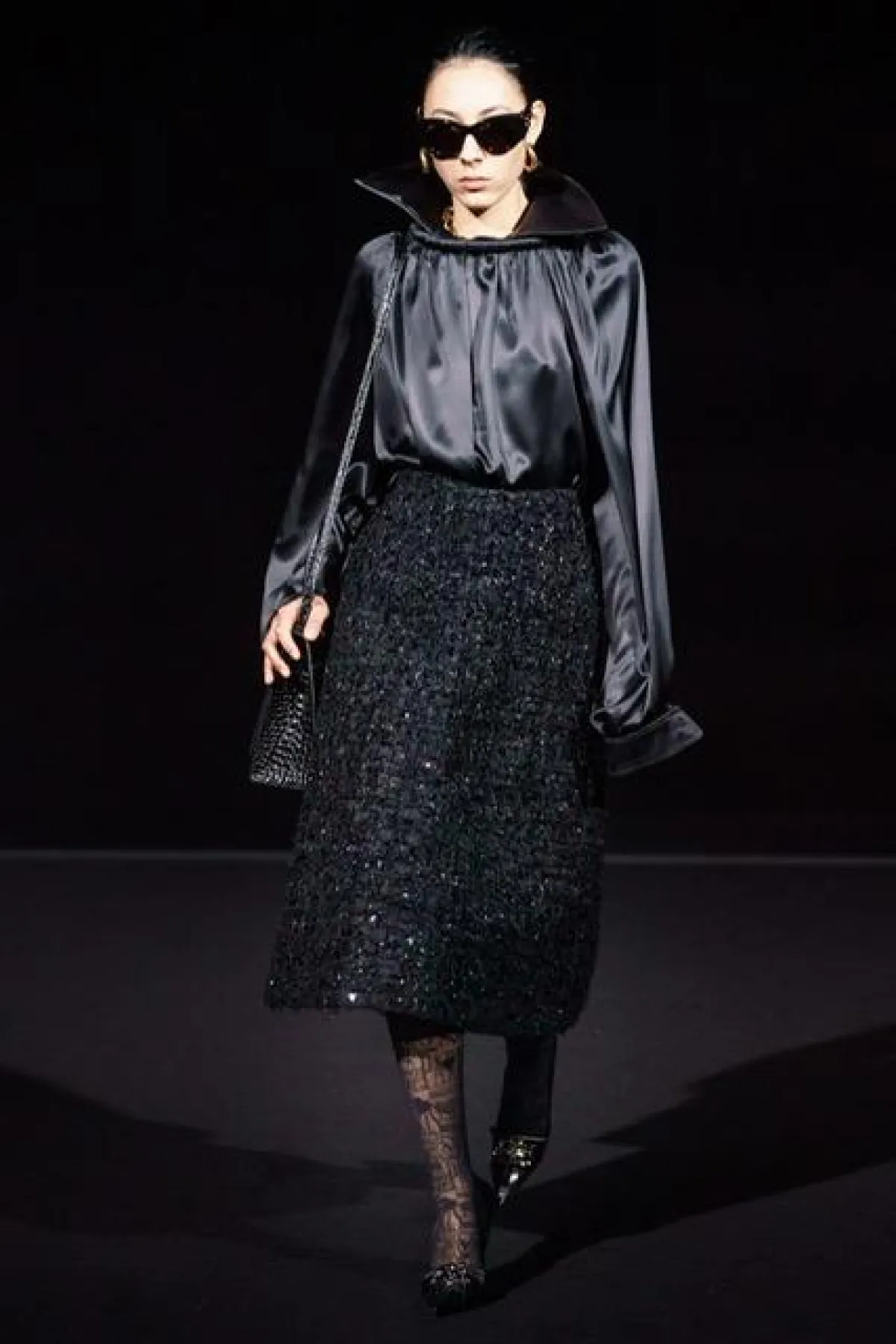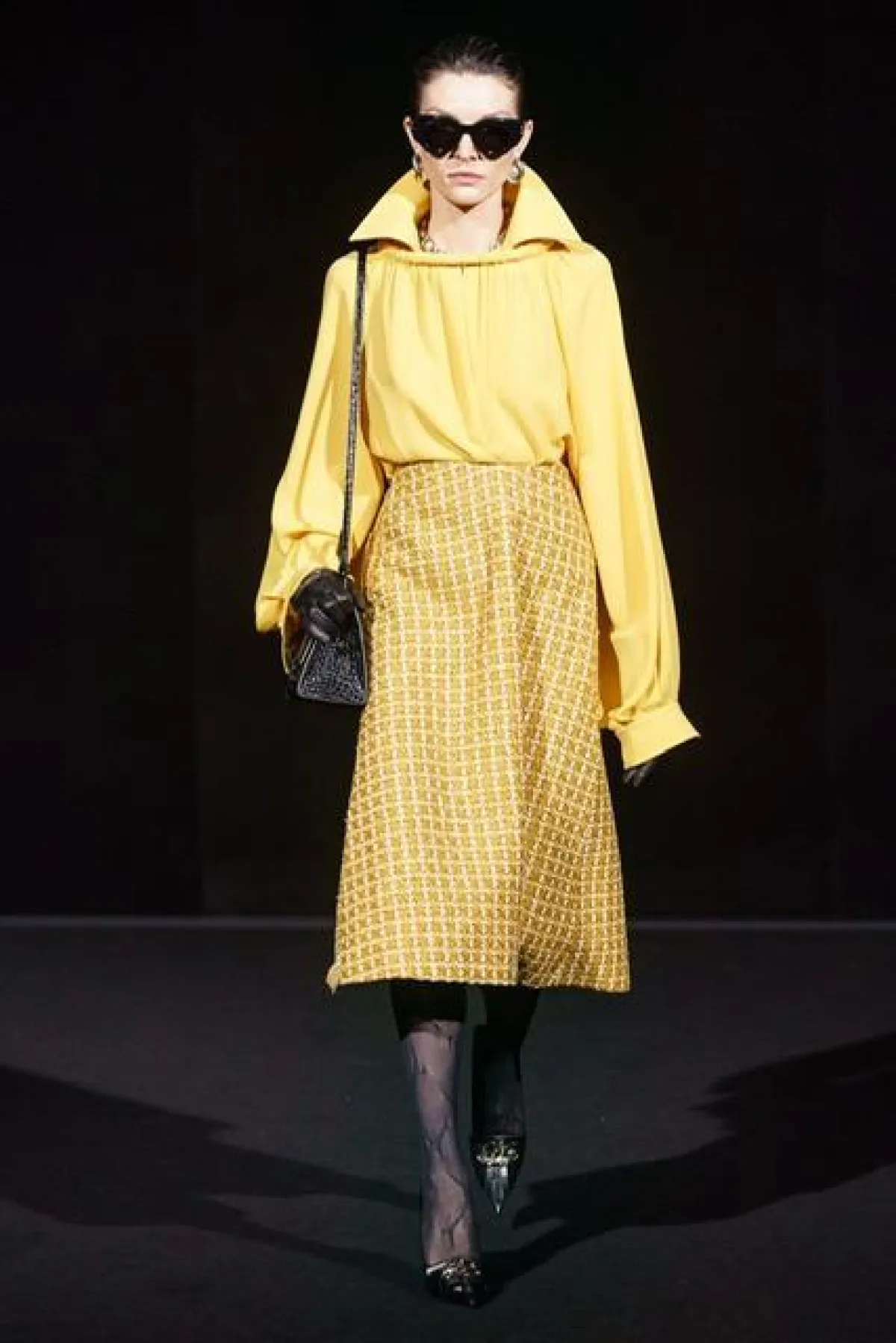 جاءت تشكيلة الأزياء التي قدمها "دامنافاساليا" DemnaGsavalia مصمم دار "بالنسياغا " Balenciaga ذات قصات مينماليه، تنوعت ما بين المعاطف الشتوية ذات الياقات المرتفعة، والقصات الطويلة، وفساتين طويلة ومنسدلة، أما التنانير فجاءت متوسطة الطول نُسقت مع بلوزات من الحرير، تميزت بياقاتها المرتفعة وأكمامها المتدلية ،غلب على العرض اللون الأسود مع لمسة من الأصفر والأحمر المتوهج .