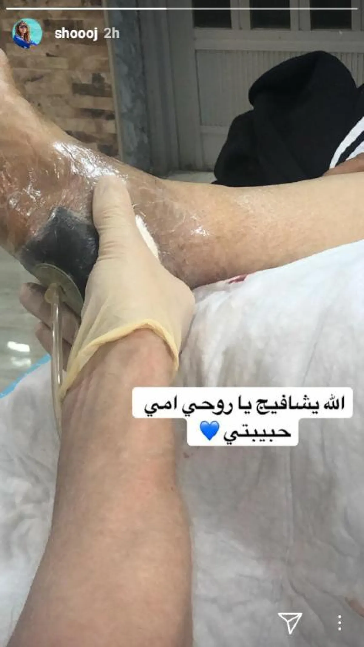 نشرت الفنانة الكويتية شجون الهاجري صورة جديدة لوالدتها وهي في المستشفى.