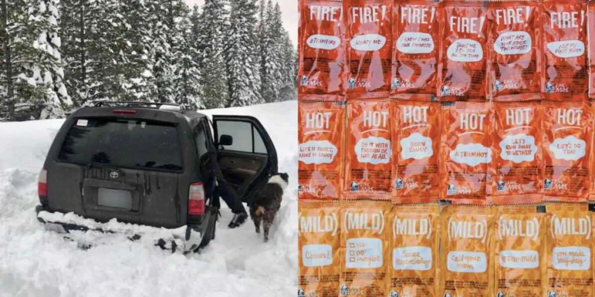 تفاصيل صغيرة قد تكون فارقة في حياتنا، وتكون طوق النجاة الوحيد والغريب بدون أدنى شك في نجاتنا من مصير محتوم وموت محقق. وأثبتت حادثة نجاة حقيقية وقعت في ولاية «أوريغون» الأمريكية مؤخراً، حقيقة هذا الأمر، حيث استطاع رجل وكلبه النجاة من حادثة قاتلة، بعد أن علقا في السيارة طوال 5 أيام وسط عاصفة ثلجية، بعد أن عثر الرجل على بعض أكياس «الصلصة الحارّة»، التي كان قد نسيها بوقت سابق.
