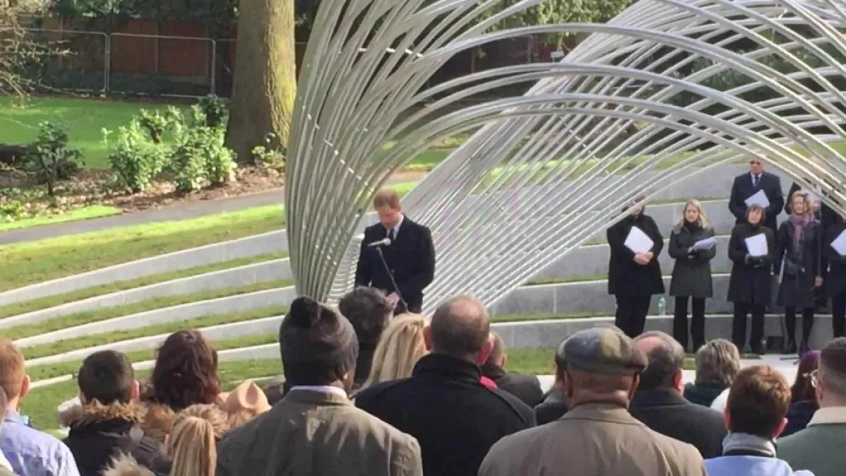 وقال الأمير «هاري» خلال كلمة ألقاها في الافتتاح: «إحياء لذكرى كل من فقدوا حياتهم، وإلى كل العائلات التي غيرت تلك الأحداث حياتها إلى الأبد، أود تقديم أسمى آيات الاحترام لكم وإهداء هذا النصب رسمياً تخليداً لذكرى أحبائكم». كما زار دوق «ساسكيس» بعد ذلك، مركزاً لأبحاث مصابي الصراعات داخل مستشفى «الملكة إليزابيث» في برمنغهام. ويهدف المركز إلى مساعدة المحاربين القدامى، والمدنيين الذين تركت الجروح ندوباً في أجسادهم بعد تعرضهم لهجمات المتشددين، على التعامل مع الآثار الظاهرة لجروحهم. ووفقاً لمكتب الأمير البريطاني، فقد أصيب أكثر من 6 آلاف جندي بريطاني بجروح بالغة أو تركت الجروح آثاراً على أجسادهم في عدد من الصراعات في الآونة الأخيرة.