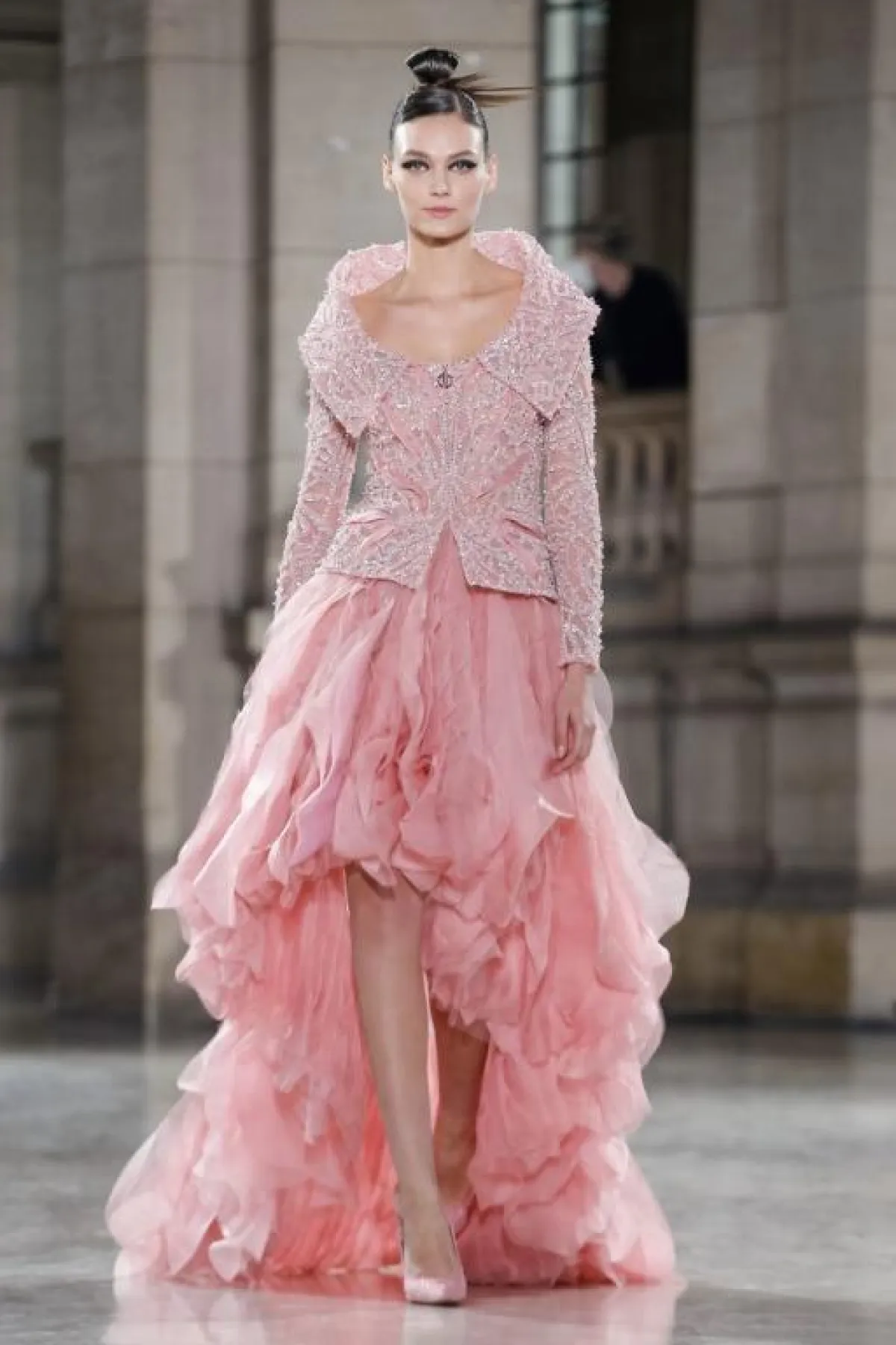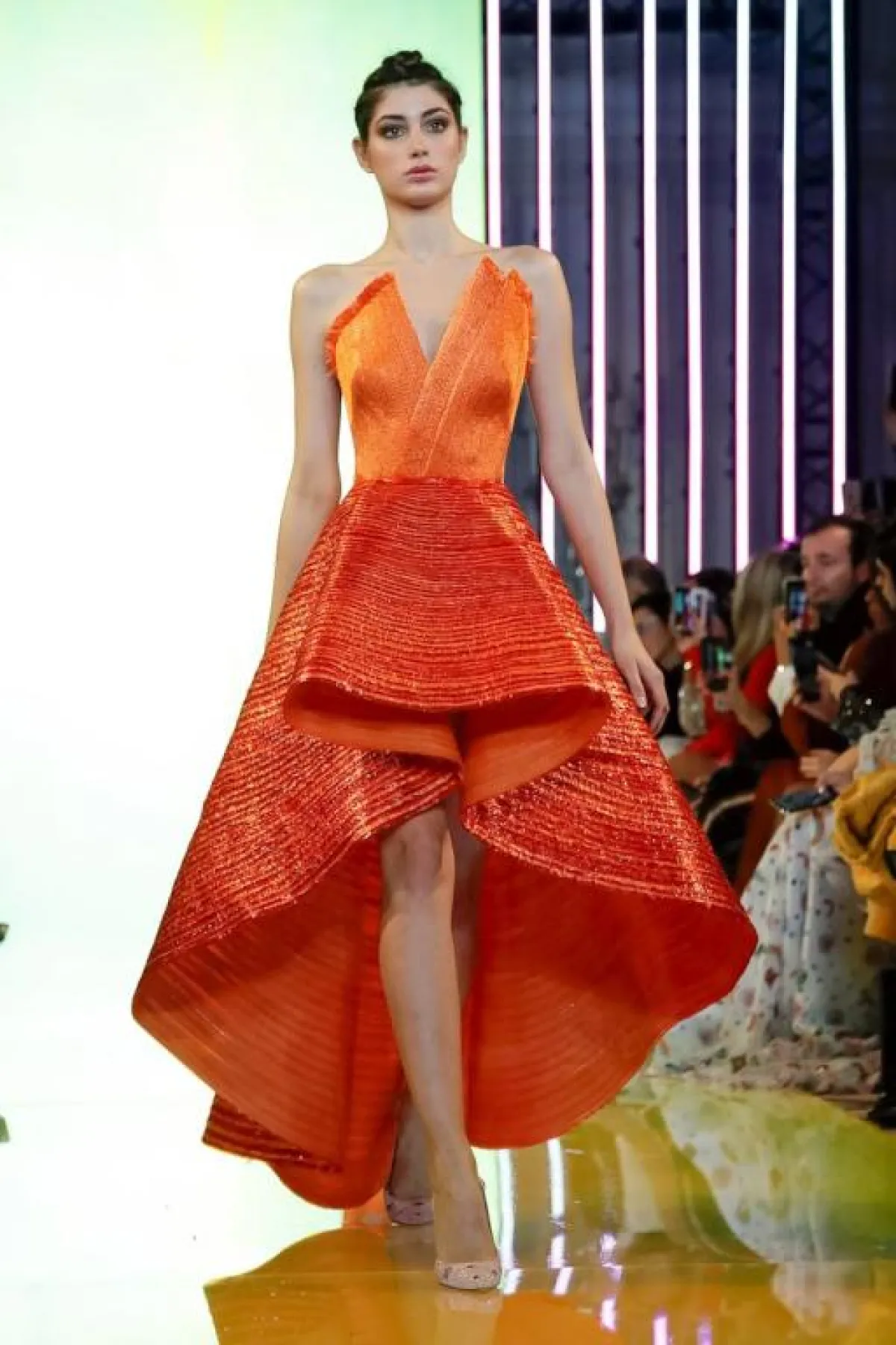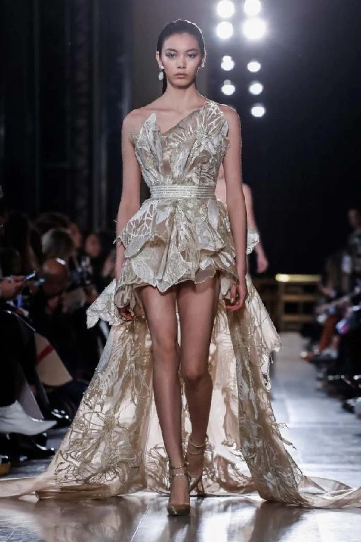 وقدم المصمم زياد نكد Ziad Nakad هذه الصيحة في بعض الموديلات الجذابة، مثل الفستان النيود المطرز، القصير قليلاً من الأمام مع تنورة Ball Gown.