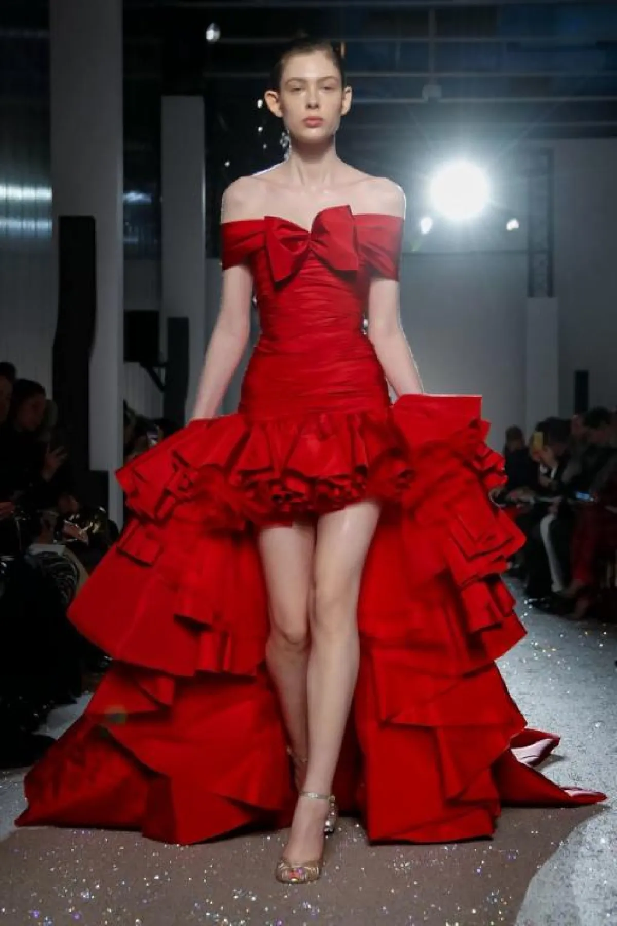 أيضاً أعجبتنا فساتين طوني ورد Tony Ward الأنثوية، حيث التصاميم التي تبرز القوام الممشوق لدى المرأة، مثل الفستان الأرجواني القصير والمزود بتنورة طويلة من التول، الفستان الأخضر البرّاق، والفستان الوردي المكون من قطعتين منفصلتين.
