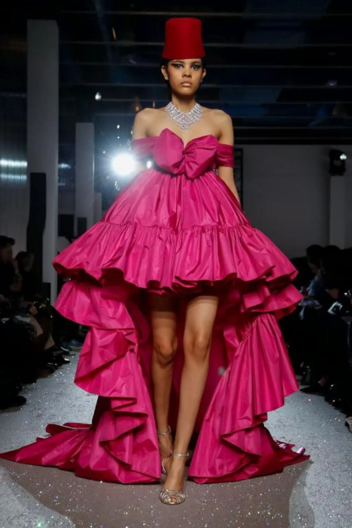 كما ظهرت فساتين الـHigh Low في عرض أزياء جيامباتيستا فالي Giambattista Valli بتصاميم متنوعة، تجمع بين هذه الصيحة وبين الكشاكش، مثل الفساتين الوردي سواء بالقماش الحريري أو التول، وكذلك الفستان الأحمر الجريء.