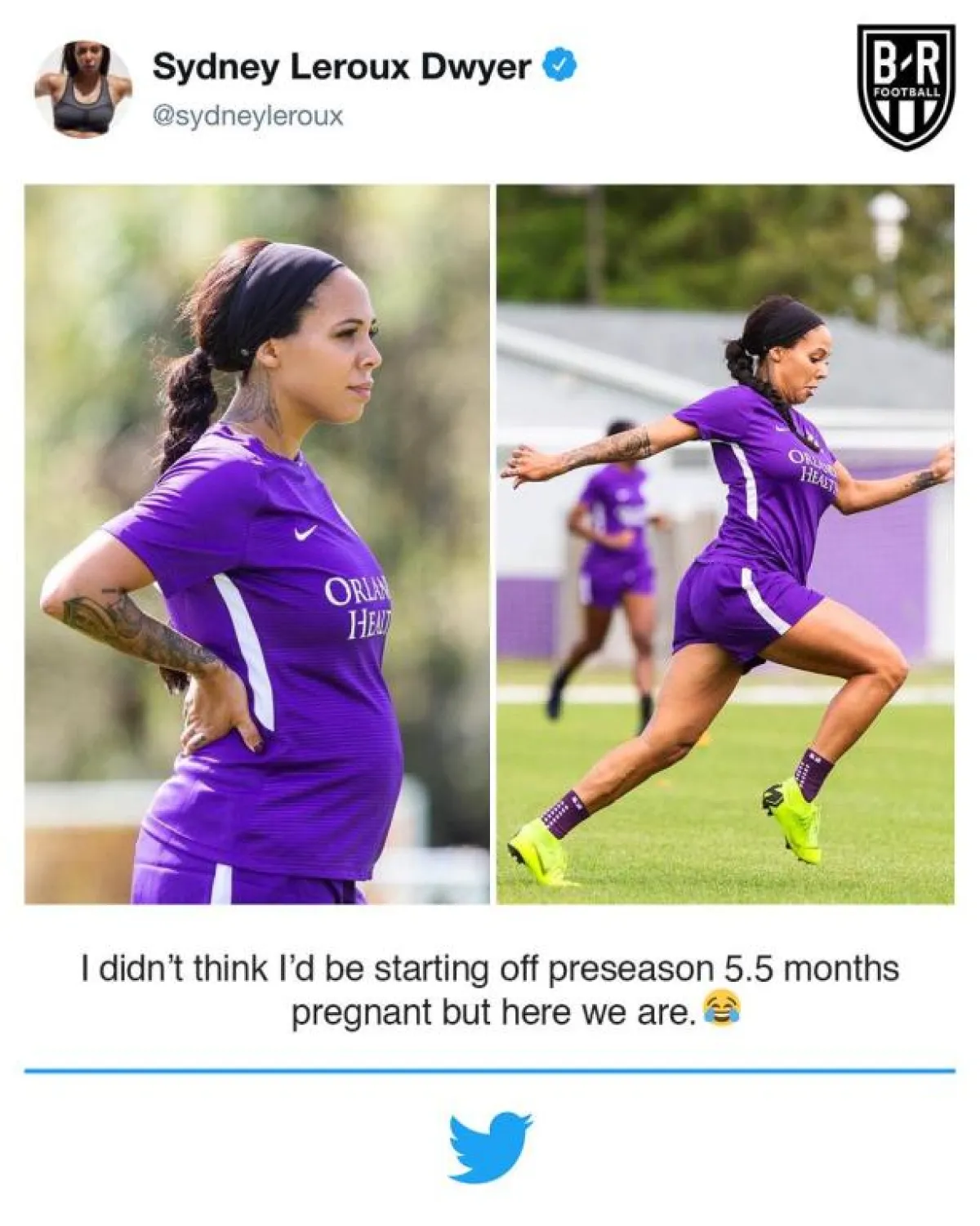 ونشرت سيدني ليرو صورًا لها، عبر حسابها بموقع التواصل الاجتماعي «تويتر» تظهر حملها ومشاركتها بالتدريبات الجماعية للفريق رغم حملها في الشهر الخامس.