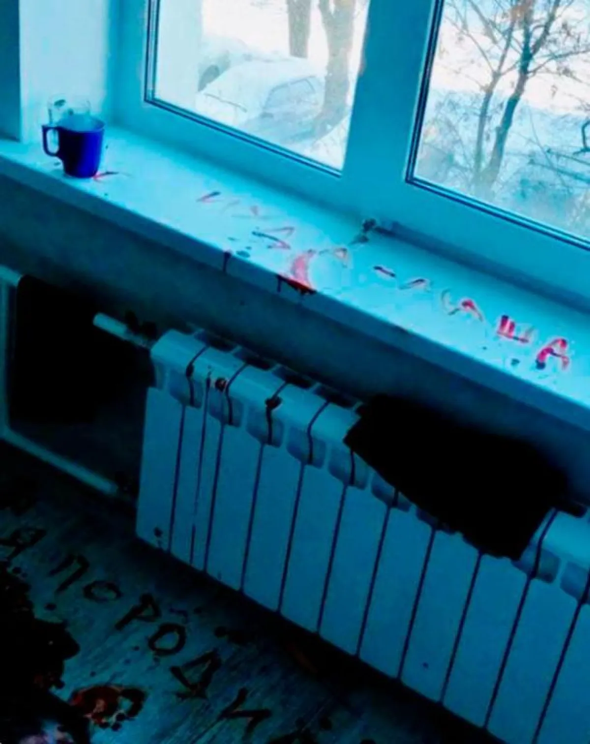 طعن «نيكيتين» ابنه «مارك» ما لا يقل عن 62 طعنة بسكين ومفك، ثم حاول الانتحار بعد قتله زوجته أيضاً، لكنه فشل، وكتب بالدم على أرضية شقته: «لقد أعطيتك الحياة، سوف آخذها»، وكانت «ماريا» قد قاتلت أثناء قتل زوجها لها، وخلفت العديد من الخدوش على زوجها قبل خنقها.