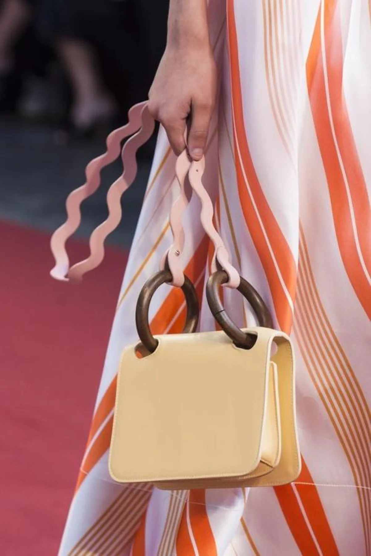 الشنط الميكرو ستكون أساسية هذا العام، بعد سنوات من الشنط الميني صغيرة الحجم، لامرأة متحررة أكثر وعملية، اعتمديها بألوان فاقعة كالأحمر من Giambattista Valli جيامباتيستا فالي، مع الفساتين الصيفية كـ حزام الخصر،