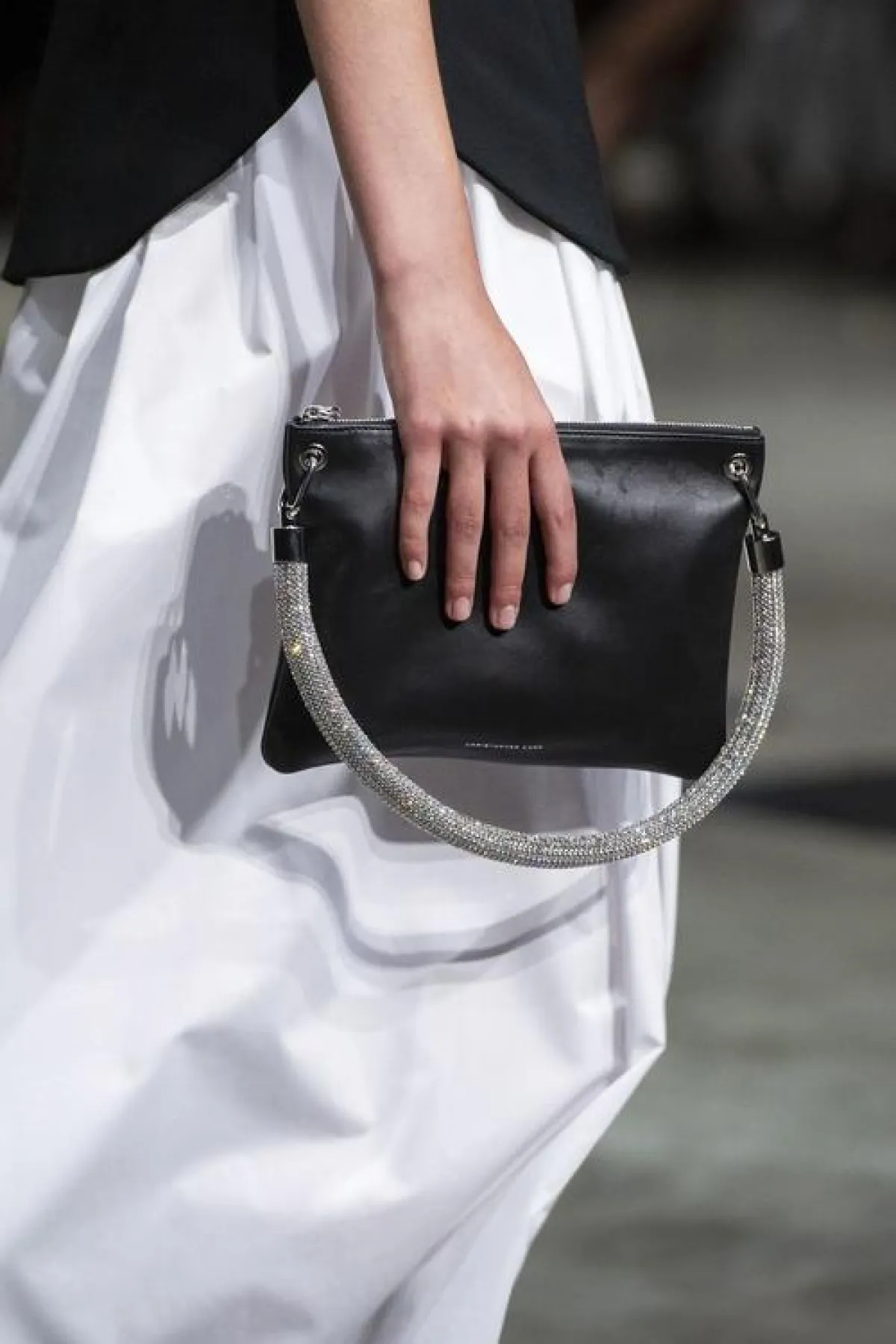 أما إن كانت الأجواء أكثر كلاسيكية، فاعتمدي هذه الشنطة من Christopher Kane كريستوفر كاني بيدها اللامعة، وشكلها المستطيل، ستضيف بعض الفخامة والترف لاطلالتِك.