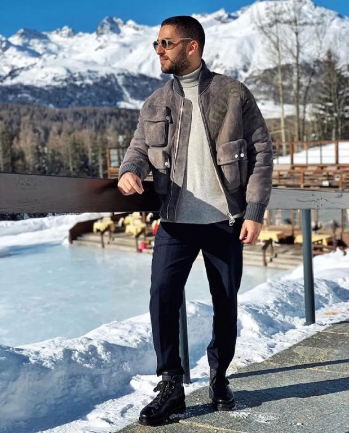 لاحظنا أنّ إلياس يفضل هذا النوع من الجواكيت بشكل خاص، فقد اختاره أكثر من مرة، بخاصة مع الأجواء الباردة جدًّا وكثرة السفر، كالجاكيت باللون الأحمر الجذاب، نسقه مع بنطلون أسود لاطلالة كاجوال كلها حيوية.