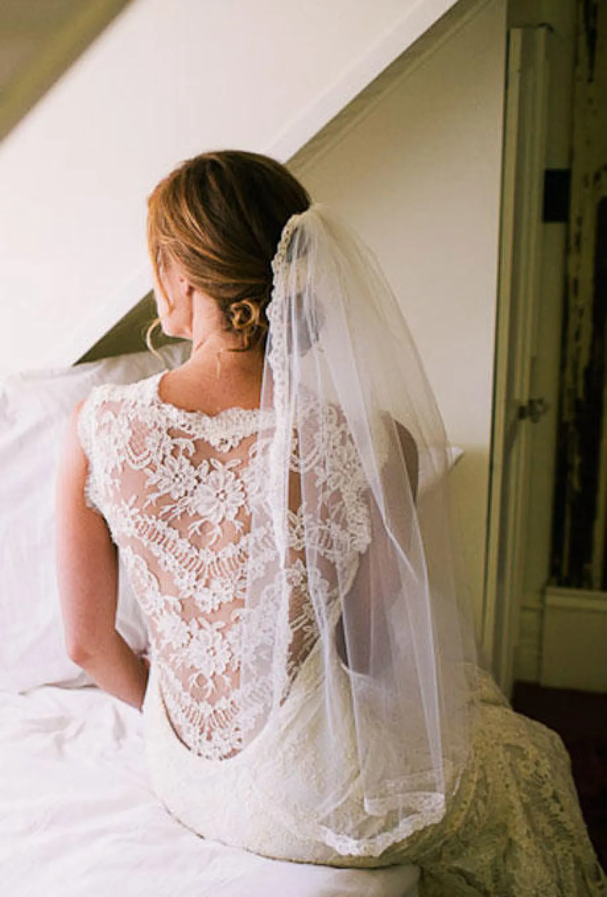 7 ـ إن كنت من محبّات الطلّة الطبيعيّة غير المتكلّفة، سرّحي شعرك على شكل كعكة بسيطة على أسفل الرأس، وإلى الجانب، وأكمليها بطرحة شفّافة.