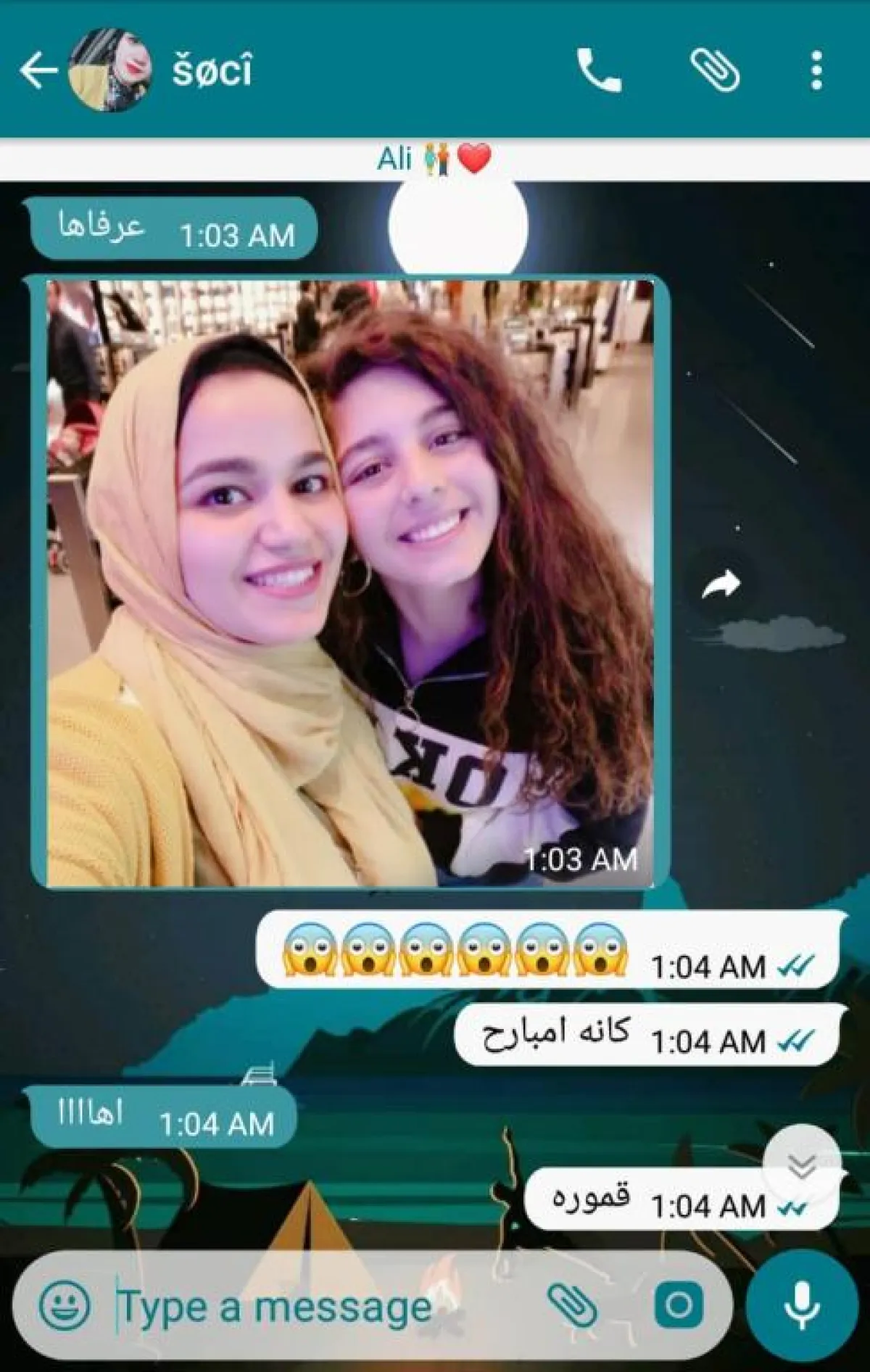 أرسلت فتاة إلى صديقتها صورتها مع الفنانة (مايان السيد) تقول لها: (عرفاها)، فردت صديقتها بإيموشن مصدوم، وكتبت: (كأنه إمبارح!)، وبدأ الحديث على هذه الفنانة بأنها (قمورة ولطيفة ومش متكبرة عارفة شوفتها فين في ماليزيا..... واستمر الحديث).