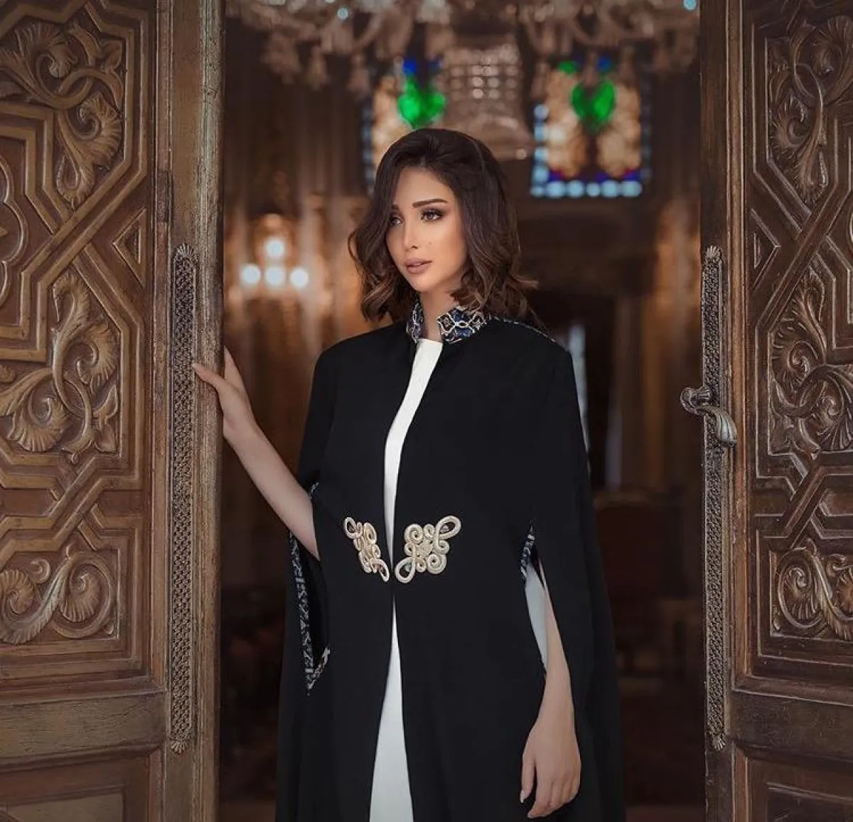 في المقابل قد نجدها تختار الستايل الكلاسيكي الفخم، كالقفطان الكاب باللون الأسود، فقط مع رباط بسيط مطرز بالخيوط الذهبية، وأكمام مزركشة مع الياقة، مثالي لمن يحبون كل ما هو راقٍ وبسيط.