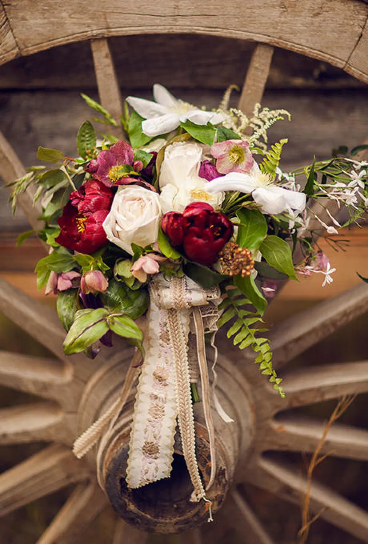 1 ـ أضيفي شريطاً قديم الطراز، إن كانت باقتك تضمّ الياسمين والورود تحديداً. ويُمكن لهكذا شريط أن يكون بلون الخشب.