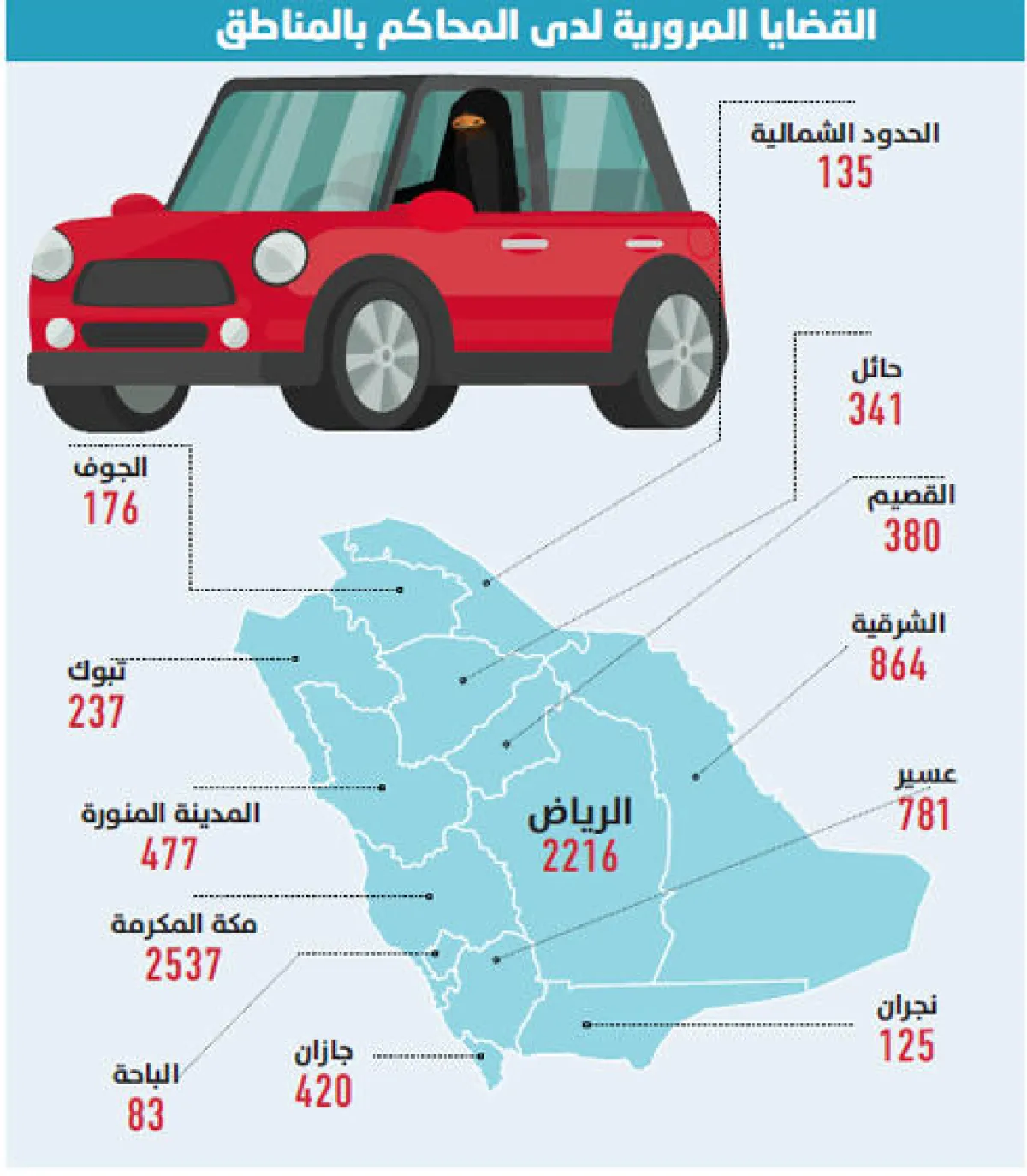 استقبلت المحاكم المرورية في مختلف مناطق المملكة، نحو 701 قضية خلال العام الحالي 1440هـ ، كان أحد طرفيها "سائقات" تسببن في ارتكاب حوادث نتجت عنها أضرار، أي خلال 180 يوماً فقط، وذلك وفقاً لما أكدت عليه مصادر مطلعة.