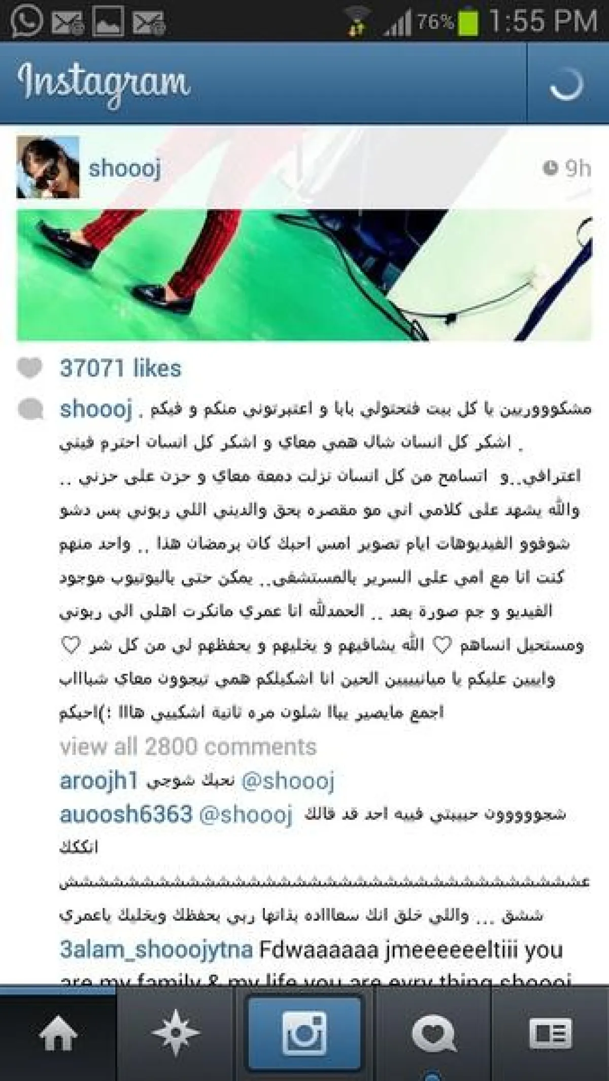 وفور توجّه شجون بالشكر لكلّ من وقف إلى جانبها، انهالت التعليقات على حسابها على Instagram، وحصدت قرابة أربعة آلاف تعليق، معظمها تعلن الوقوف إلى جانبها وتمدّها بالمعنويات والكلام الجميل؛ فشجون تمتلك قاعدة جماهيريّة كبيرة، لا يُستهان بها.