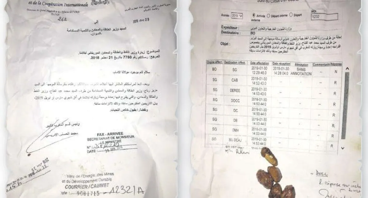 تداول مستخدمو مواقع التواصل الاجتماعي في المغرب صورًا لوثائق إدارية منسوبة لوزارة الطاقة والمعادن والتنمية المستدامة، وذلك بعد وصولها إلى دكان (بائع الفواكه الجافة). الأمر الذي خلف موجة من ردود الفعل الساخرة، بينما أعلنت الوزارة المعنية فتح تحقيق في الموضوع.