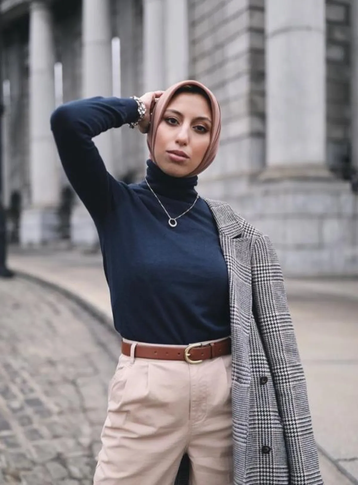 ولفة الحجاب هذه عادة ما تناسب صاحبات الوجه الطويل والنحيف.
