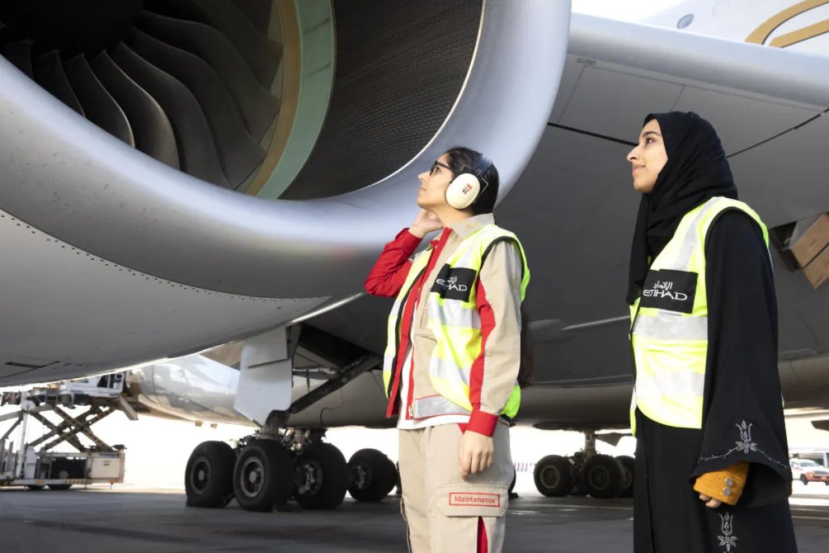 يُذكر أن المرأة تَحْظَى بتمثيلٍ واسع على امتداد أقسامِ العمل السبعة في مجموعة الاتحاد للطيران، حيث تصل نسبة الموظفات الإماراتيات إلى أكثر من نصف الكوادر الوطنية.