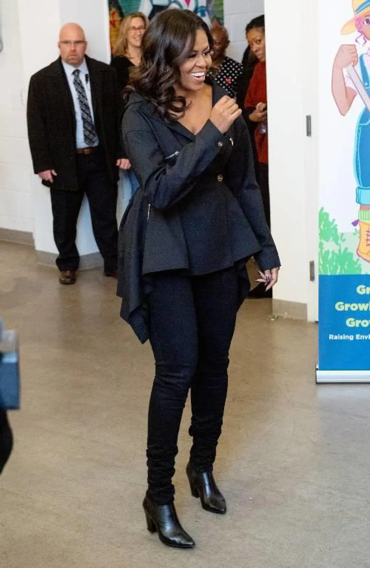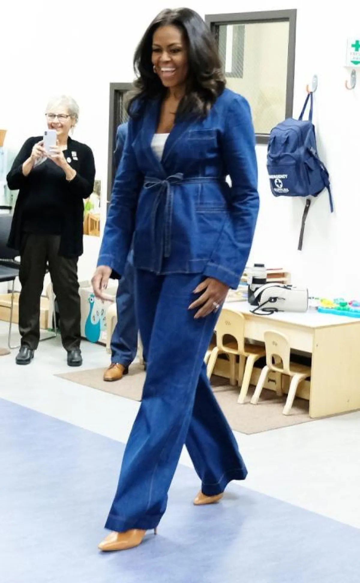 على الرغم من أنّ ميشيل أوباما كانت تميل إلى الأزياء الكلاسيكية، أصبحت الآن أكثر عصرية مثل البنطلون المزود بخصر مرتفع، والذي ساعدها على أن تبدو بقوام جذاب.