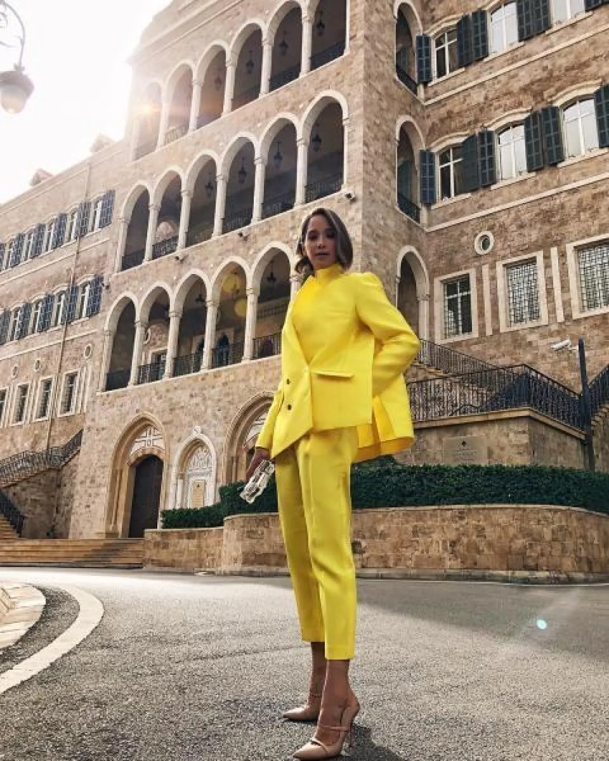 اعتمدت المدونة الكسندرا لاب صيحة البدلة بأسلوب المونوكروم أو اللون الموحد، واللافت أنها كانت جريئة في اختيار الألوان، ظهرت ببدلة باللون الليموني، ثم اختارت الأخضر العشبي والأحمر.