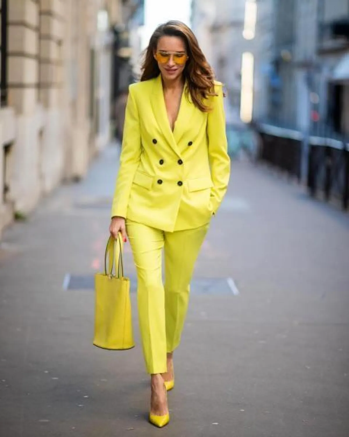 ينصح خبراء تنسيق أزياء الموضة بالابتعاد عن البدلة في شكلها التقليدي، أي التصميم الرسمي مع لون محايد مثل الأسود أو الرمادي، بينما ظهرت درجات النيون المضيئة تجدد إطلالتك هذا العام.