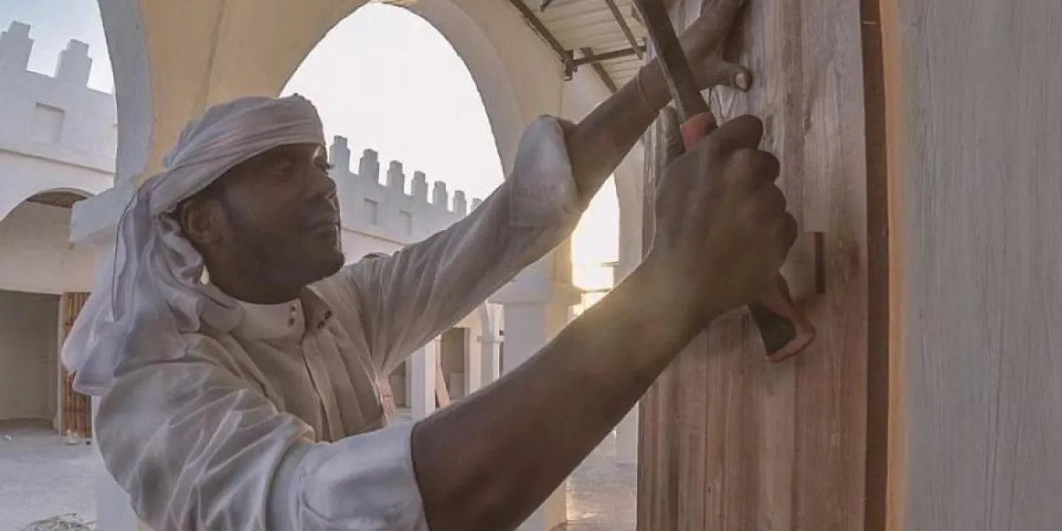وبيَّن البنيان أن معظم العاملين في بناء مُجسَّم السوق هم من ذوي الخبرة والمهارة العالية، ومنهم من اكتسب الخبرة من تشييد قرى الساحل الشرقي في الأعوام الماضية، بالإضافة إلى عدد من الشباب السعوديين الذين يتم تدريبهم ليكتسبوا مهارة تشييد القرى التراثية، حيث قال: "هناك أكثر من 40 شابًا وشابة سعوديين تم تدريبهم على حرفة بناء القرى التراثية، وتمكنوا من أن يكون لهم عمل خاص يستفيدون منه ماديًّا، حيث تم تكليفهم ببناء المُجسَّم الذي سوف يتم الانتهاء منه خلال الأيام القليلة القادمة.
