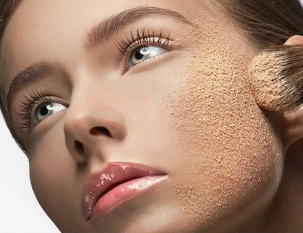 ـ بعد ذلك استخدمي البودرة اللوز بودرة الشفاه وضعيها على وجهك بطريقة الطبطبة لا تمسحيها أو تفرديها بالإسفنج فقط طبطبة.