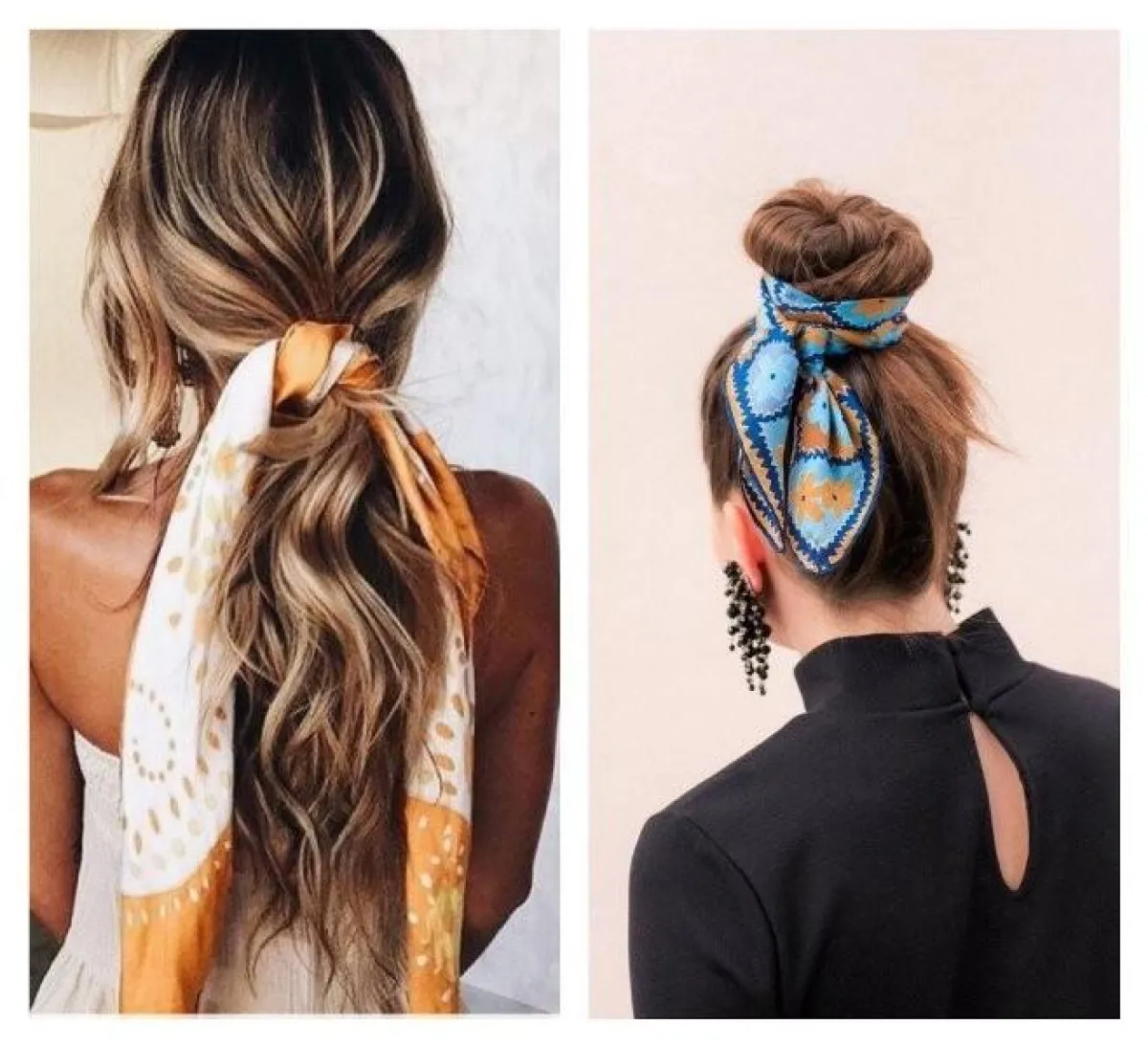 تسريحات بسيطة للشعر وسهلة مزينة بسكارف، تعتبر من أبرز تسريحات الشعر لهذا العام. ولتطبيقها، ما عليك سوى ر بط سكارف حول شعرك سواء من الأمام أو الخلف.