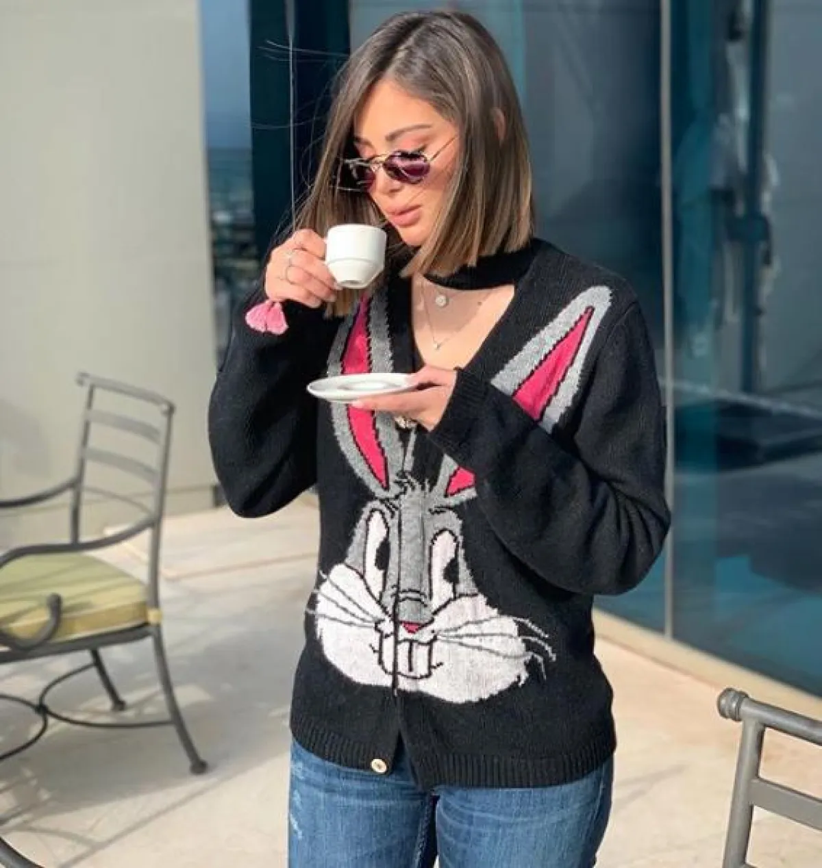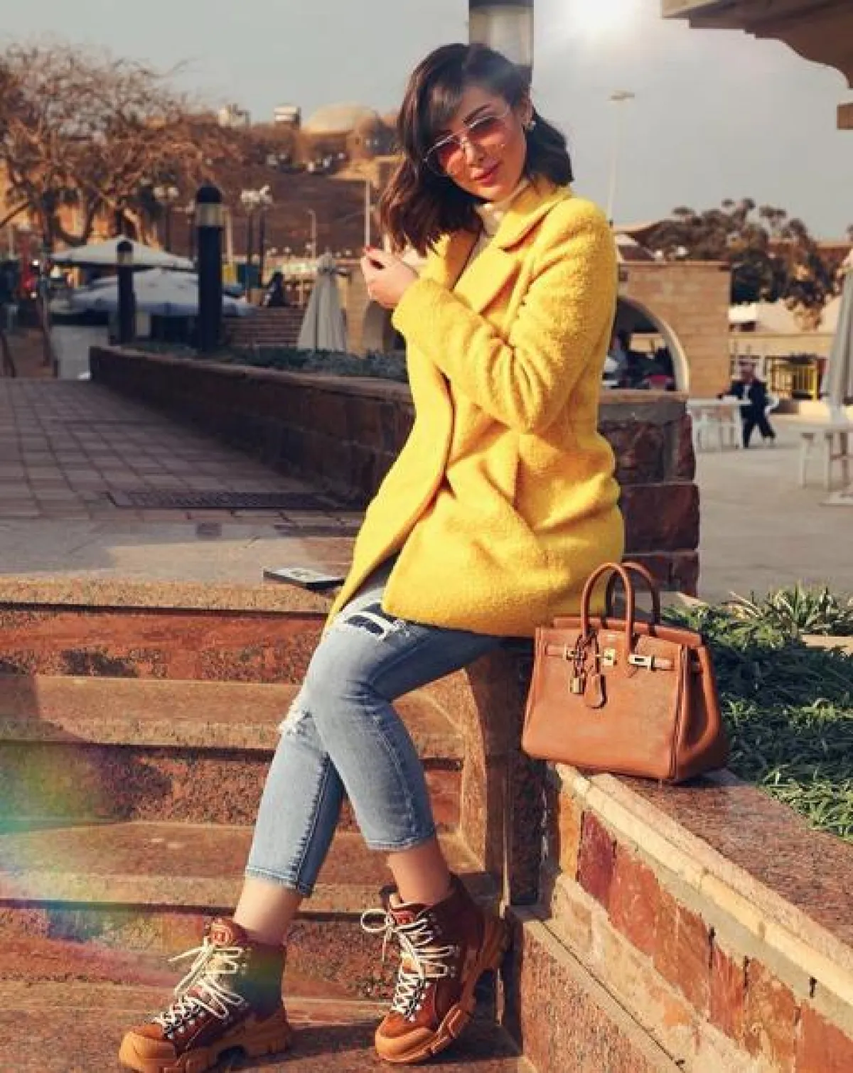 شاهدنا بسمة بوسيل مؤخرًا باطلالة عصرية لافتة، اختارت فيها معطفًا باللون الأصفر -واللون الأصفر أحد أبرز صيحات الموضة هذا الموسم- وقد نسقت معه بنطلون جينز وحذاءً بتصميم غريب من الجلد العسلي، مزينًا بربطات، واختارت شنطة يد من “هرمس” Hermes ونظارات شمسية مستوحاة من السبعينيات مع عدسات فاتحة وملونة.