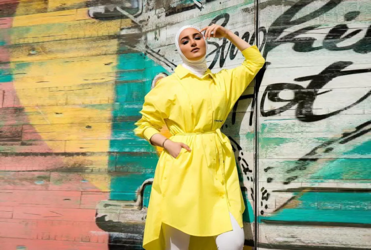 اطلالات ربيعية للمحجبات من اللون الأصفر الساطع