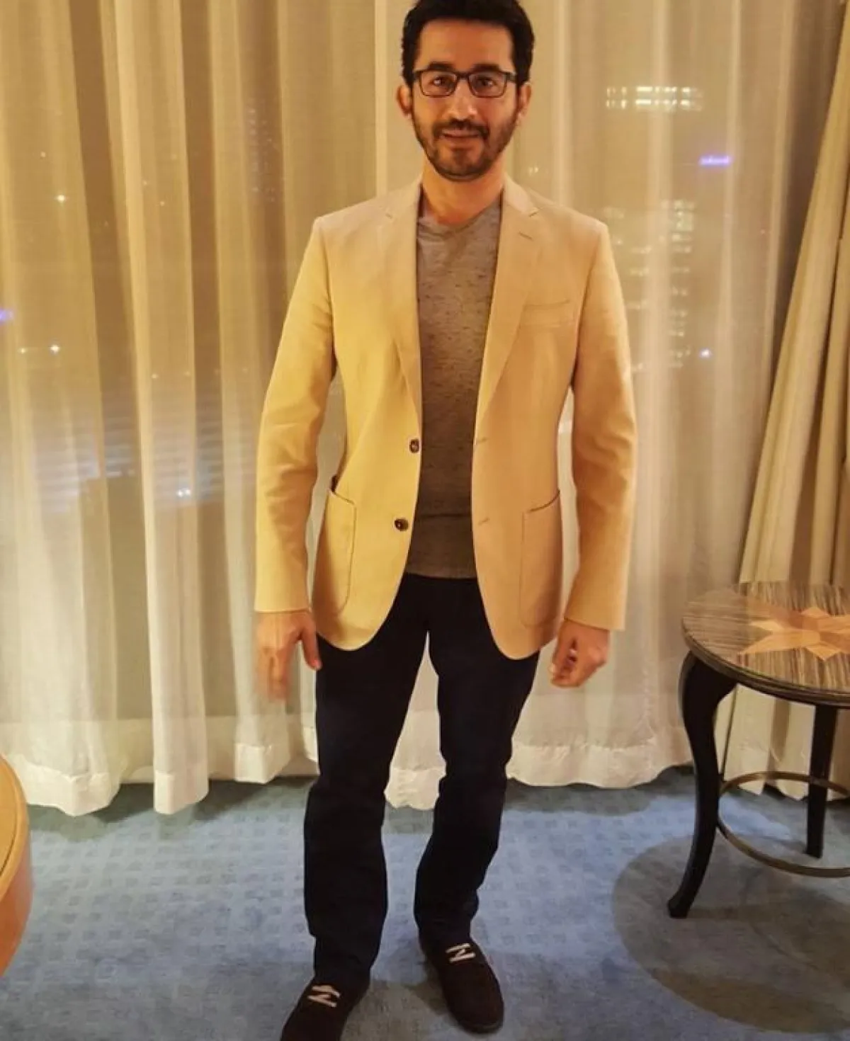 أما حسن الرداد فقد لفتنا اختياره للـ جاكيت الصوف الطويل باللون البيج الجملي، مع الجينز والتيشرت الأبيض، لاطلالة كاجوال، ننصحك معها بارتداء بوت الساق ليزيدك طولًا كحذاء الـ "شيلسا بوت" The Chelsea Boot.