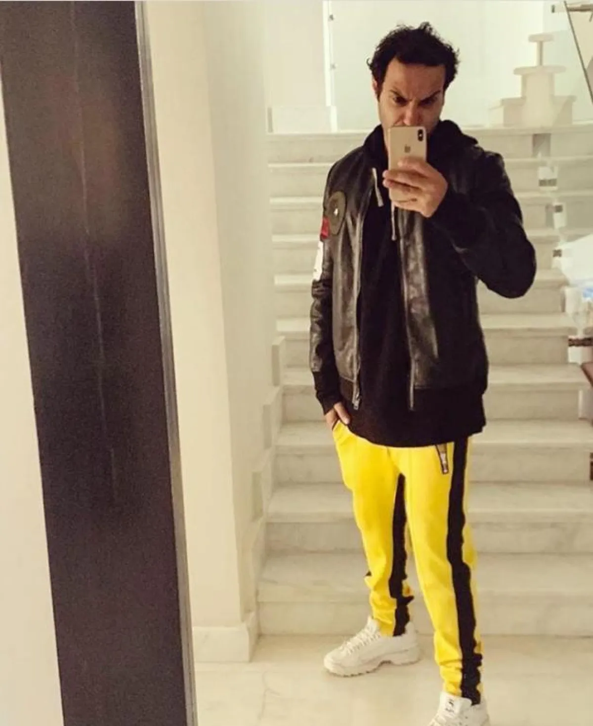 اختار النجم إياد نصار الجاكيت القصير بخامة القطن الناعمة مع الصوف، ونسقه بطريقة كاجوال مع التيشرت الأبيض والجينز باللون الداكن، لاطلالة بسيطة وهادئة تصلح لمشاويرك طوال النهار، كما أنها أنيقة كذلك في العمل.