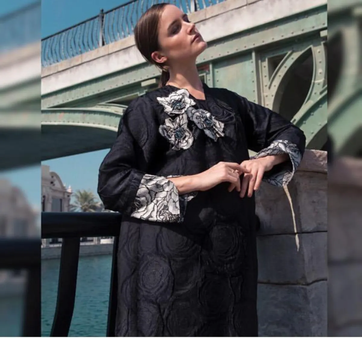هذا التناغم في العباية من Taraf Abaya ترف عباية، للتطريزات على الصدر والأكمام، ستبدين معه باطلالة مختلفة بخاصة وإن اعتمدتِ حجابًا باللون الرمادي الثلجي، لموديل يجمع بين الكلاسيكية والعصرية.
