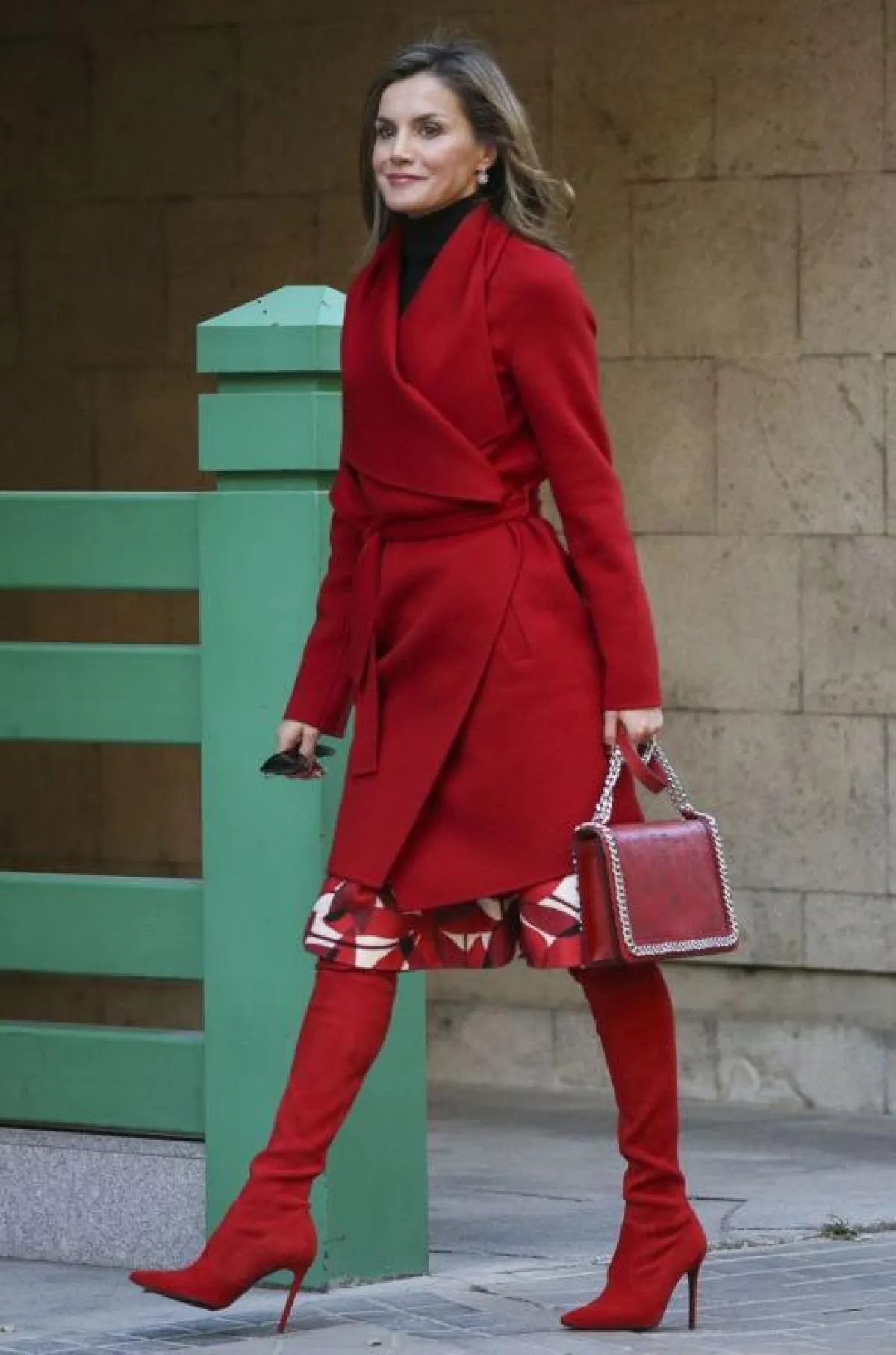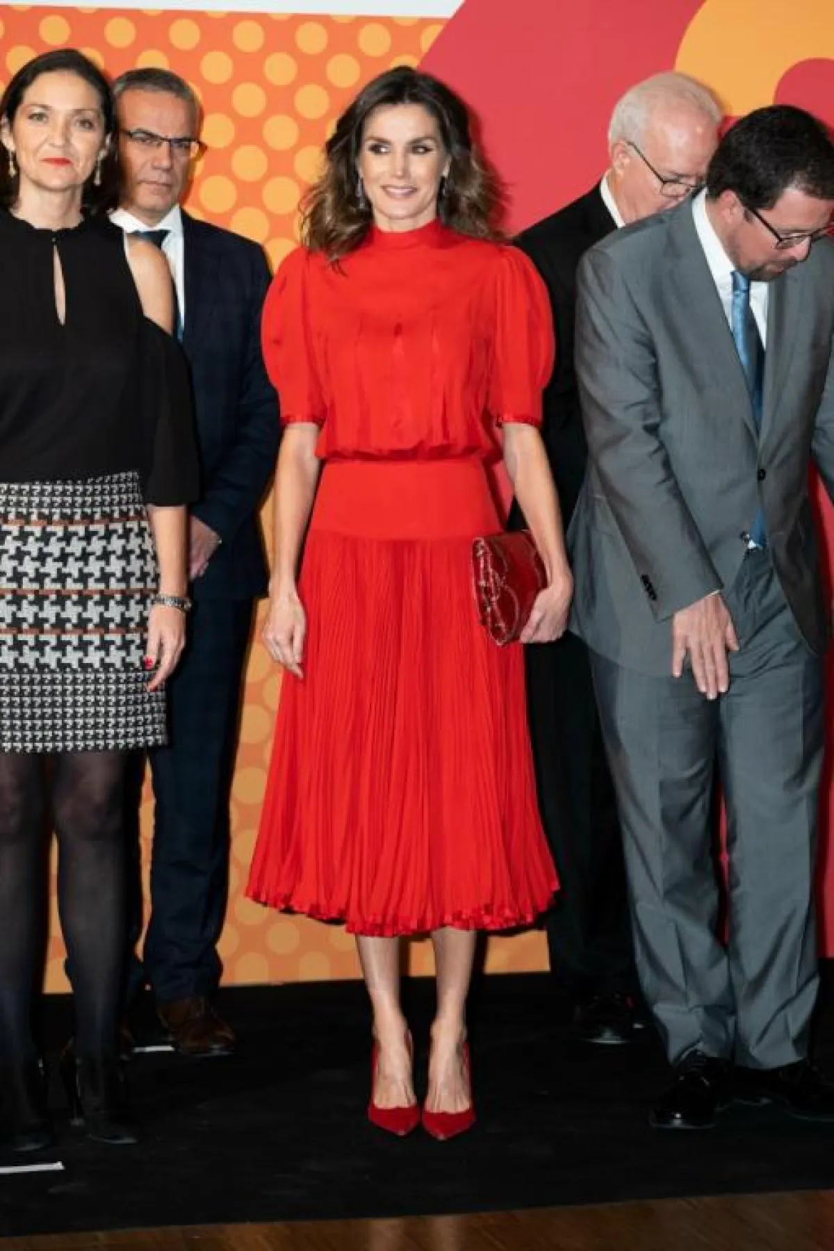 الملكة ليتيزيا في بدلة باللون الأحمر: