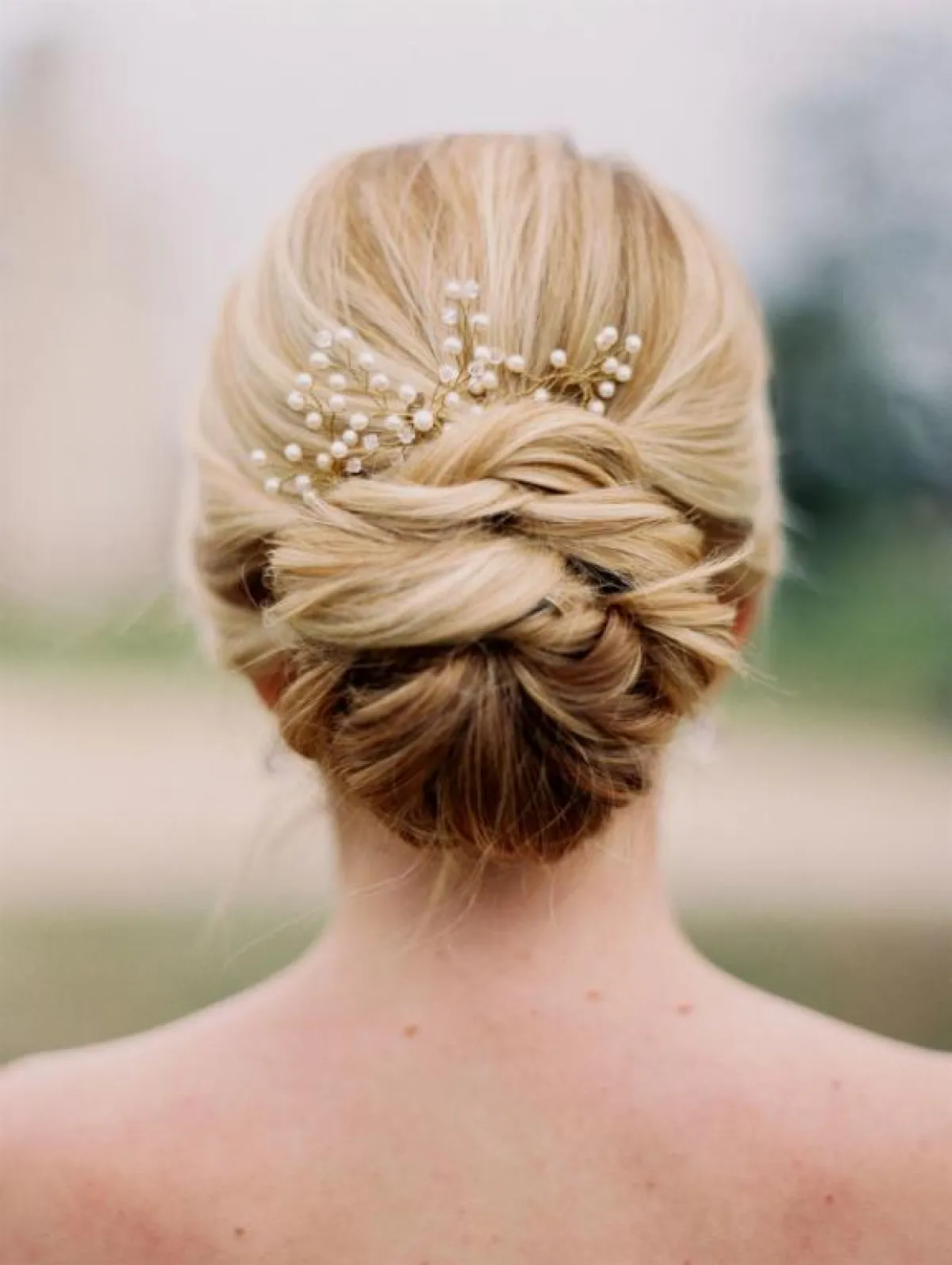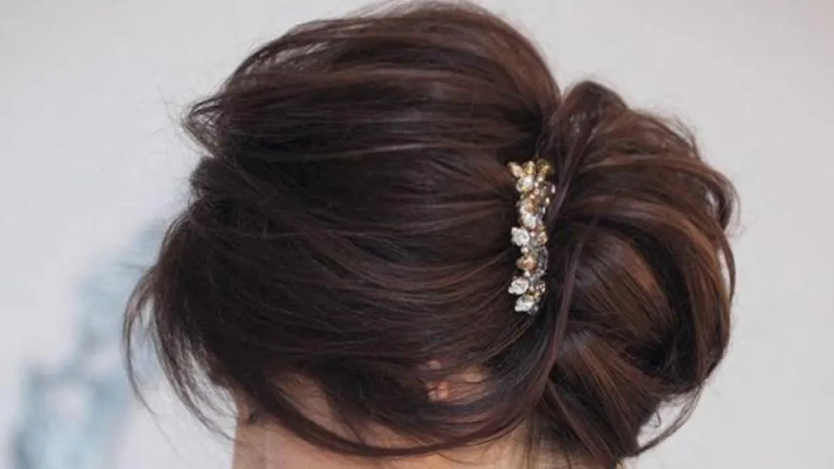 يمكنك اعتماد تسريحة الشعر المرفوعة ولكن في آخر الرأس، مع تفريغات تتخللها إكسسورات لامعة تتماشى مع فستانك لإطلالة كلاسيكية تناسب حفل الزفاف.