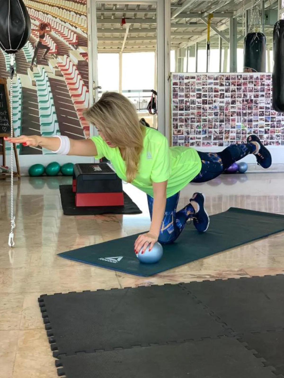 تُمارس الحركة من خلال تثبيت ركبة الساق اليمنى على الأرض ومدِّ الساق اليسرى إلى الوراء، مع تثبيت اليد اليسرى على الكرة ومدّ اليد اليمنى الى الأمام ومحاولة تقريب ركبة الساق الممدودة وكوع اليد الممدودة إلى بعضهما. وتُكرَّر الحركة لليد والساق الأخرى.