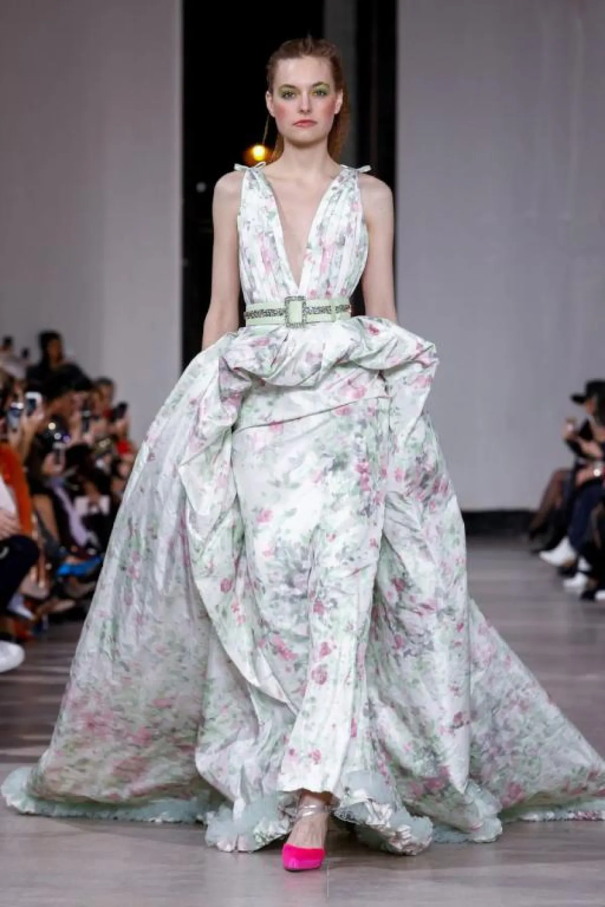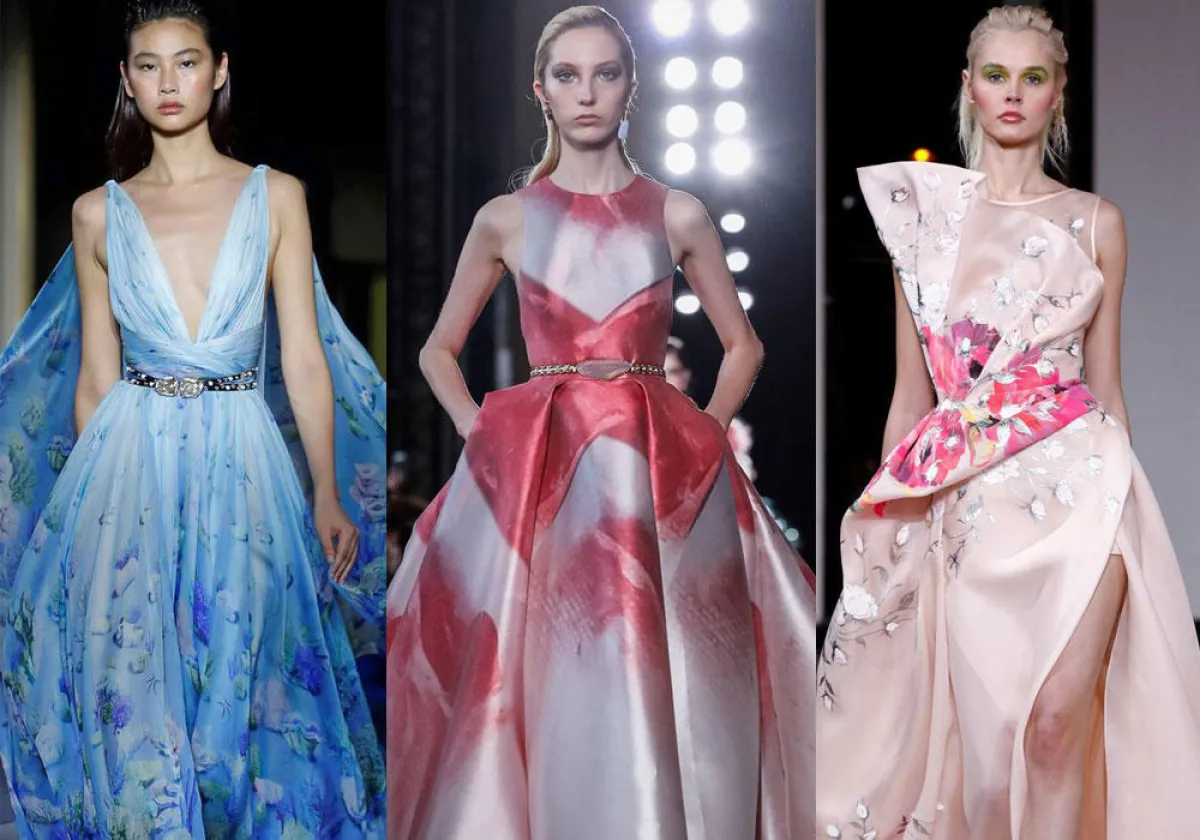 كان للمصمم ايلي صعب Elie Saab نصيب كبير من هذه الصيحة، فقدم مجموعة من الفساتين التي بدت وكأنها لوحات فنية بألوان جذابة مع أقمشة فاخرة، وطغت التصاميم المنفوشة على فساتين ايلي صعب.