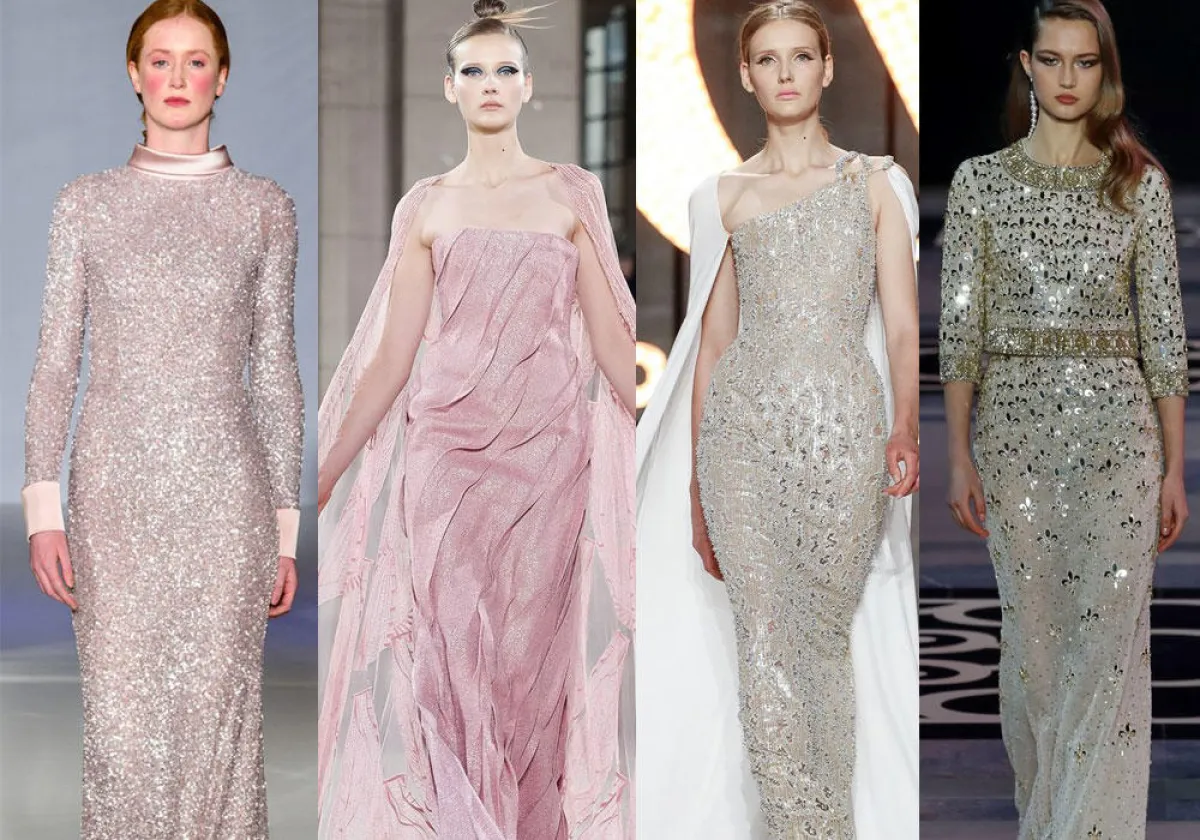 من توقيع المصمم جورج حبيقة Georges Hobeika، إخترنا لكِ فساتين جذّابة بقصّات بسيطة، مثل الفستان الملون والمزين بالترتر البرّاق، والفستان المكون من قطعتين منفصلتين Crop Top ومغطى بالتطريزات الذهبية.